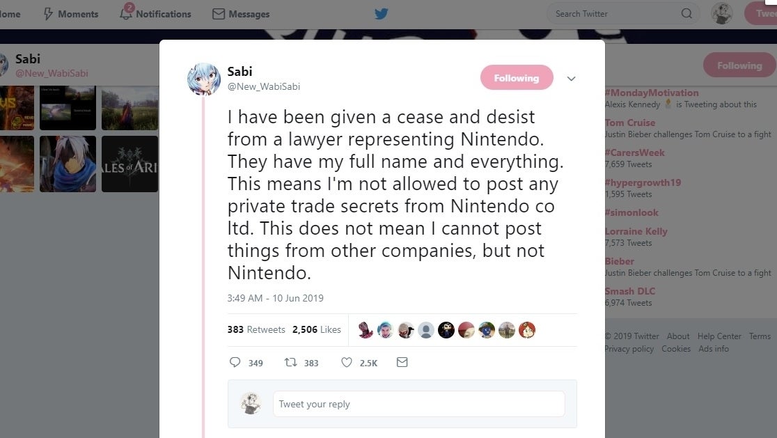 Sabi's actions have since come under intense scrutiny, with thousands of Twitter users having their say. Sabi's Discord is also being flooded with new members, some of whom are on the hunt for Nintendo news before it's announced.