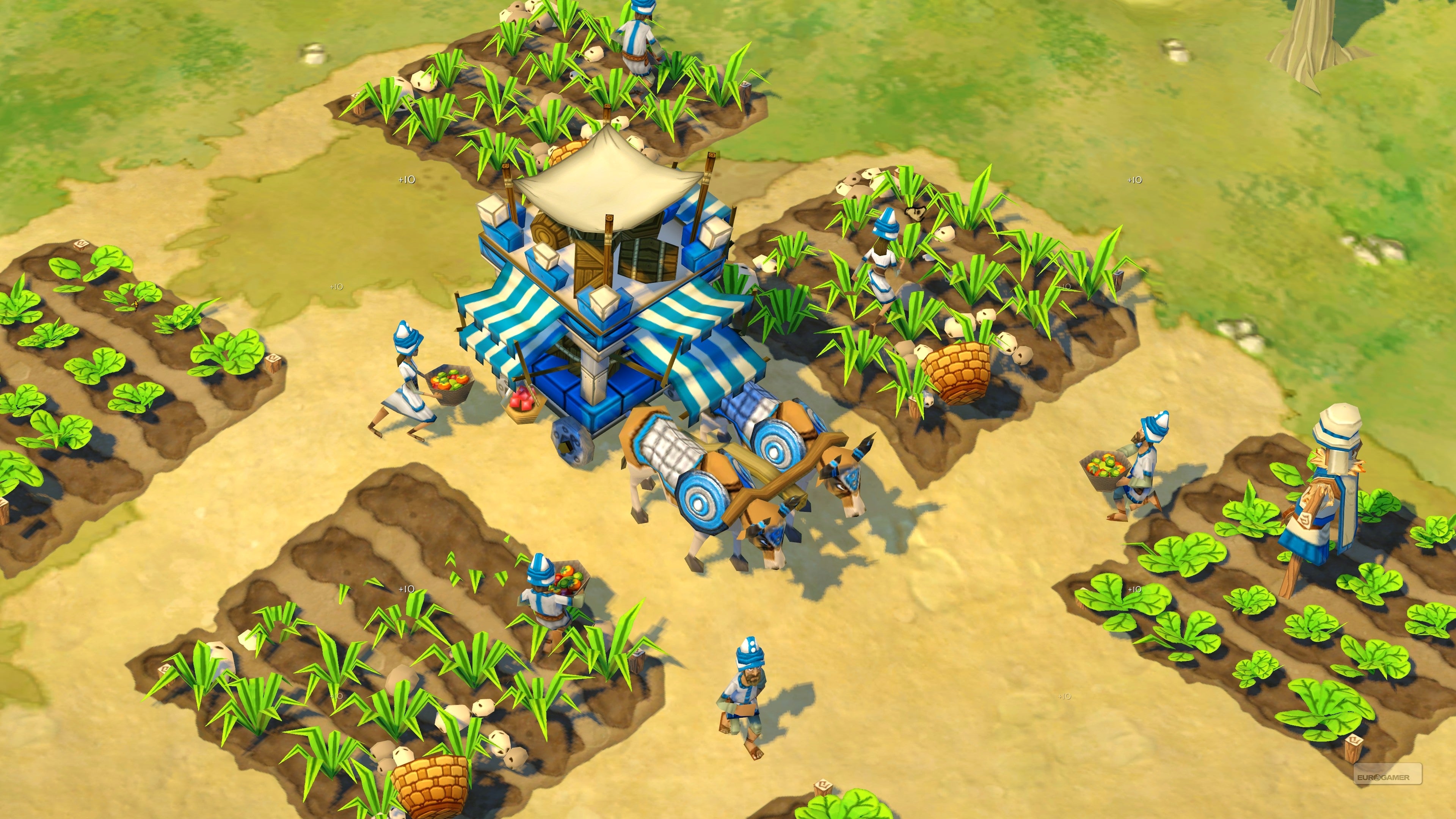 The Fertile Crescent quests include scavenger hunts for ingredients comprising "a drink worthy of the gods," an evil tyrant to overthrow, disenfranchised Persian landholders to fight, and you can embark on an Ox Cart mini-game where you must attempt to gather as much gold as possible with your mobile storehouse.