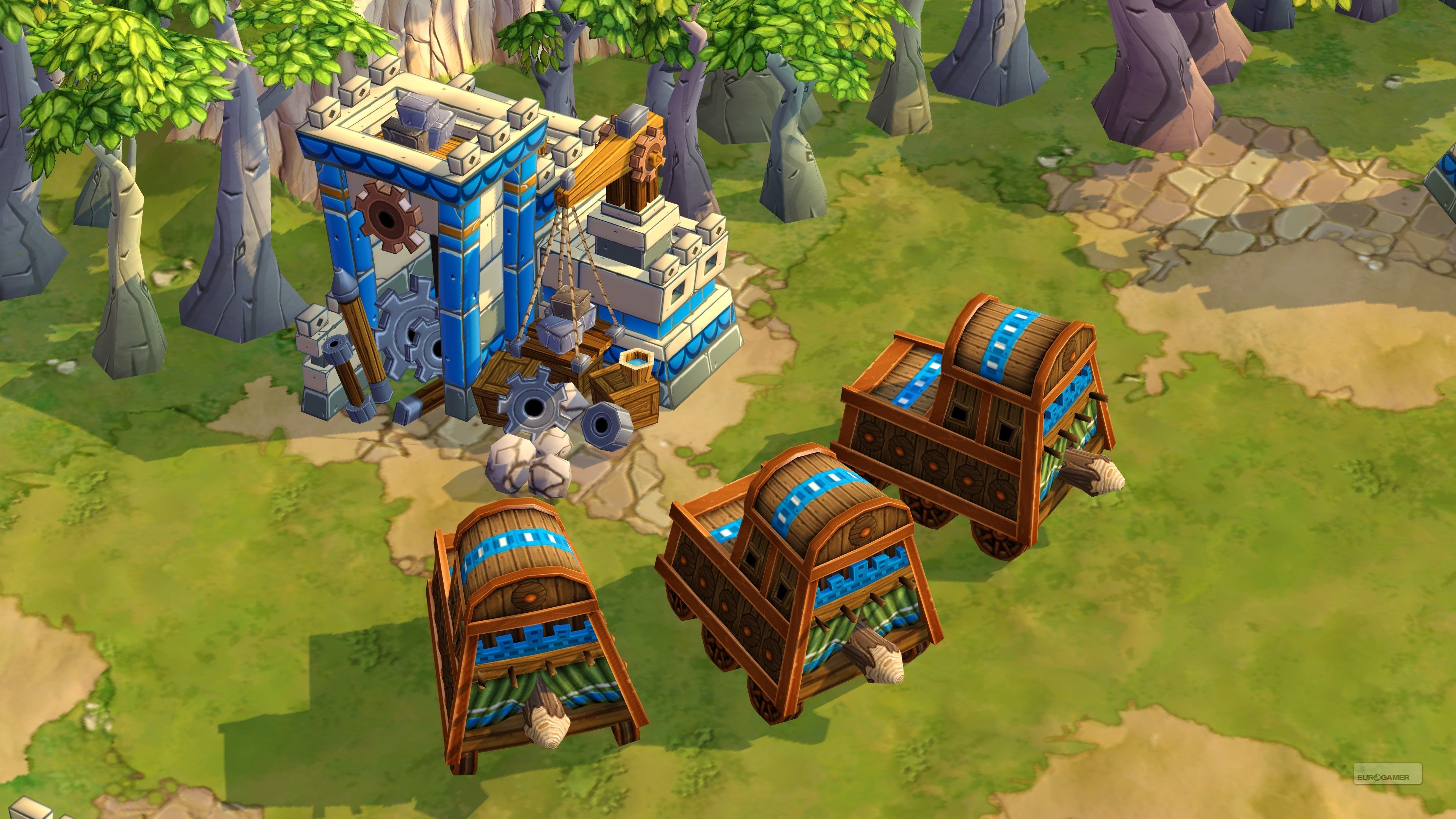 Crucial to this swift allocation of resources is a new unit called the Ox Cart, which acts as a mobile storehouse. Instead of having to spend a lot of time and wood rebuilding storehouses or trek long routes to gather and deposit resources, the Ox Cart can move along with the rest of the settlers.