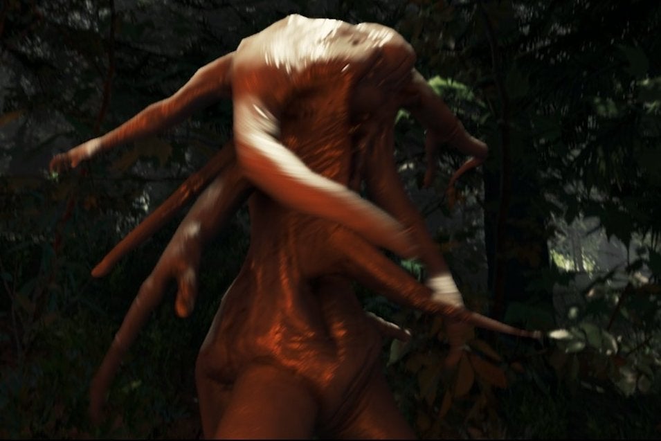 Falcone cites I am Legend and Cannibal Holocaust as major influences with their not-too-subtle "who are the real monsters?" theme. "You've invaded their forest, you're murdering them, you're chopping down all their trees. Maybe they're just trying to survive in this forest. Maybe you're the bad guy. So we try to make it emotional when you kill one of them and have them care. They're not all bad, even if they are trying to eat you."