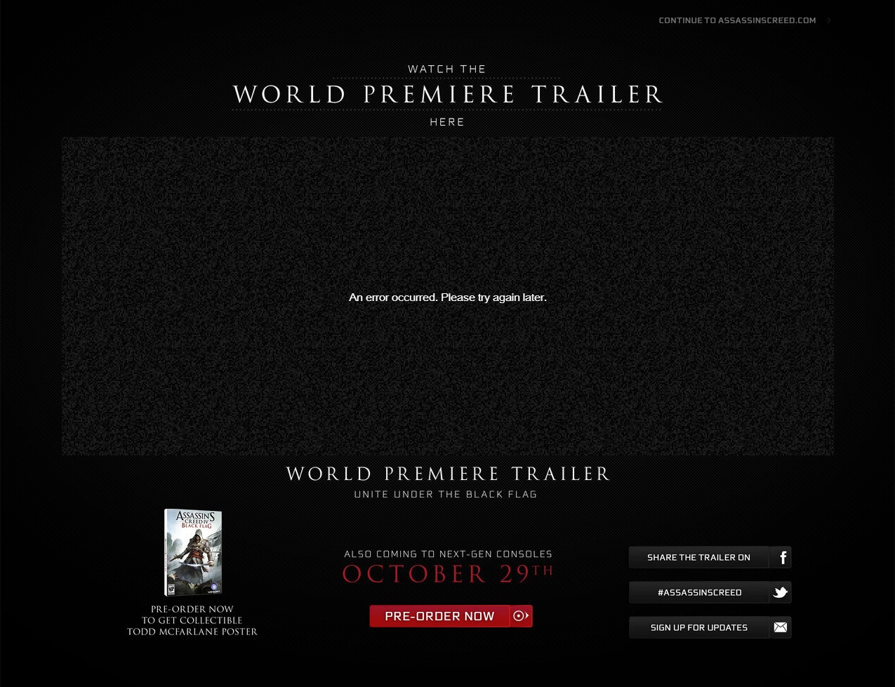 ORIGINAL STORY: Assassin's Creed 4: Black Flag will be launched on 29th October 2013, a hastily-edited page on Ubisoft's website has revealed.