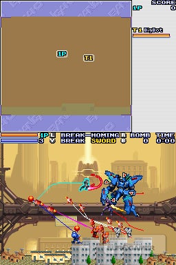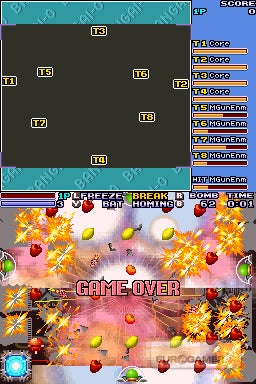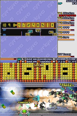 It doesn't care about a story. It doesn't care about difficulty curves and it doesn't even care about frame-rates. If you grind your DS to a halt with a last-pixel special EX attack, well done! You've made the game bully the hardware into submission. This deranged candidness is still refreshing, and the open level structure shows up XBLA's Bangai-O Missile Fury HD as being the inferior sequel (which was reflected in review scores). This is partly because its stages are locked back into plodding tradition, and it was a real shame to close Pandora's box in that way. Nailing the freeform chaos of stages like Spirits' Sabu into a tighter puzzle-oriented theme was like putting Bangai-O in a zoo to make it do tricks. But there's yet another black mark against Missile Fury HD: they took out the bat.