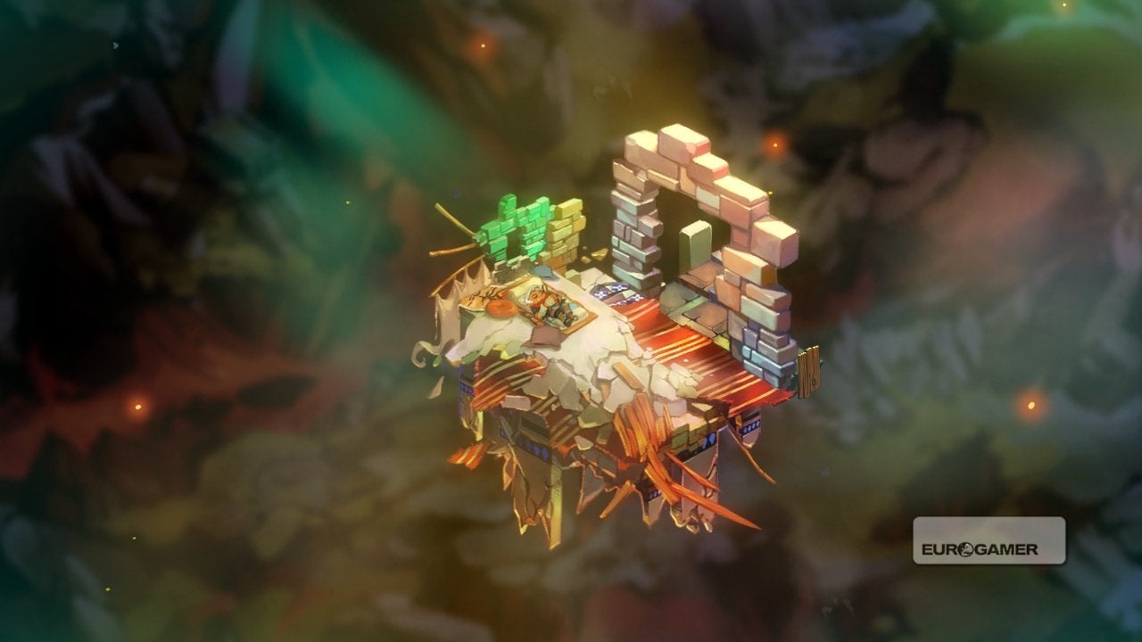 The Bastion, to which you return between levels, is the hub of your activities, and each core allows you to build a different structure to manage everything from your weapons loadout and upgrades to secondary objectives. The Kid embodies the game's aesthetic - strong, silent, with a touch of the Old West about him - and this is reflected in the things he builds and their functions, like a Distillery where you accumulate potions and liquor that act as passive modifiers in combat. Everything you touch is narrated by the old man - named Rucks - who will growl knowingly about how a whale tonic ain't made from whales, but might make you as tough as one.