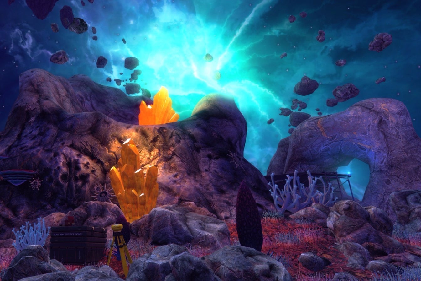 The opening sequence is breath-taking. Gordon stumbles out of the Lambda portal into a vast alien panorama, rocks bobbing in the purplish void ahead of him, partially silhouetted by Xen's ice-blue sunlight. As you approach the precipice of the island you're stood on, a flock of alien birds soars across Gordon's vision as Joel Nielson's rousing soundtrack swells in your ears.