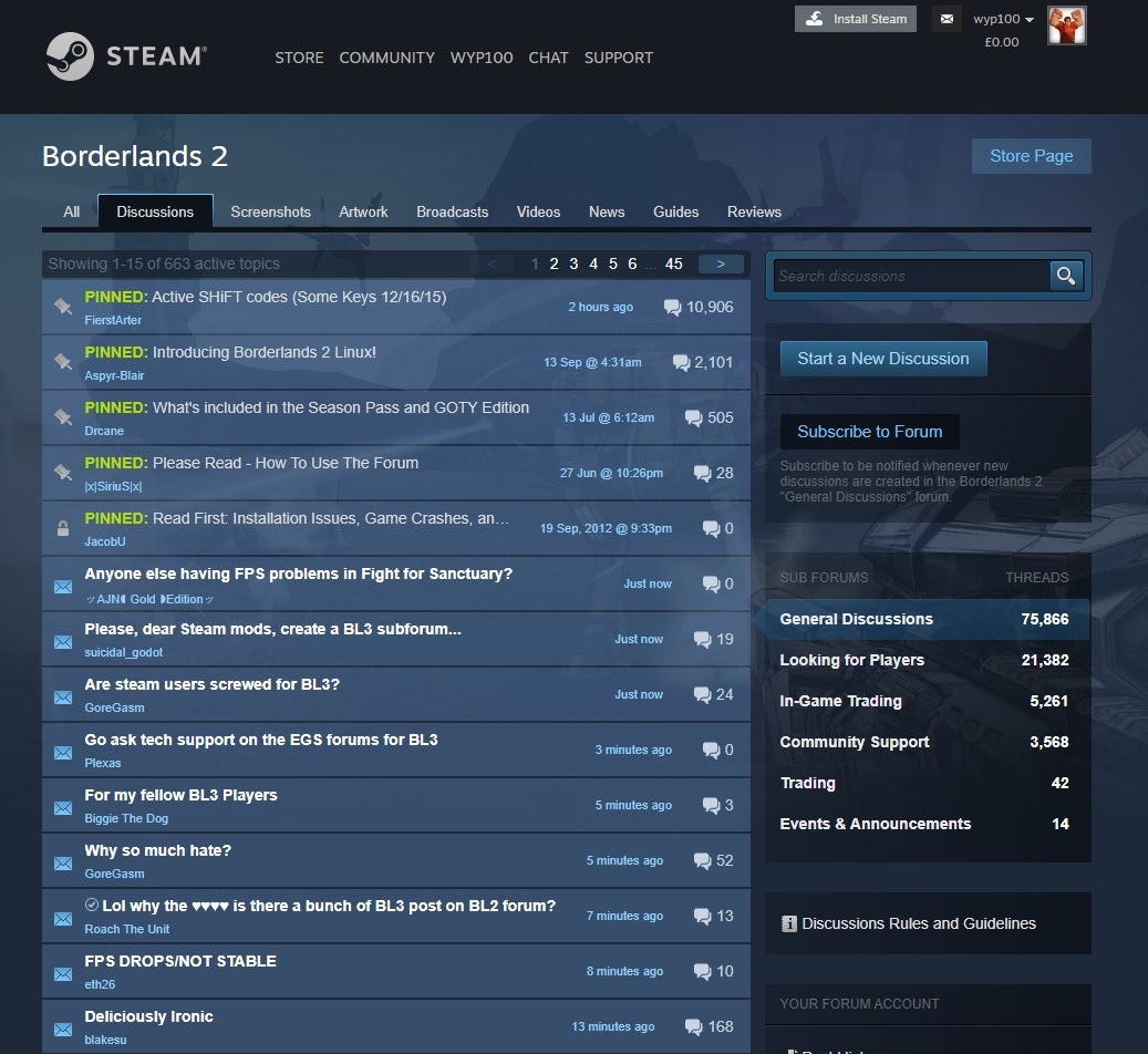 Gearbox's own forum has a section for Borderlands 3, which is packed with troubleshooting threads started by players asking for help. But it's the Borderlands 2 Steam page where most discussion is being had - and not all of it is helpful or wanted, it seems.