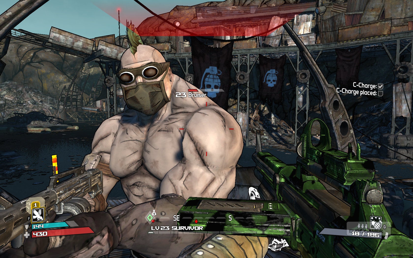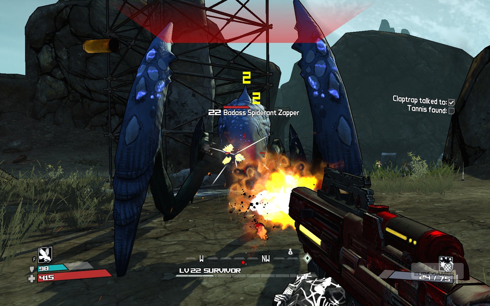 There are a couple of reasons for this slow build. One is that you're probably going to play the first bit of the game on your own. And that's fine: single-player in Borderlands is entirely valid, and fun. But the sense remains that there's something missing. This is filled when you start playing co-op, because one of the most obvious mechanisms in the game suddenly makes sense.