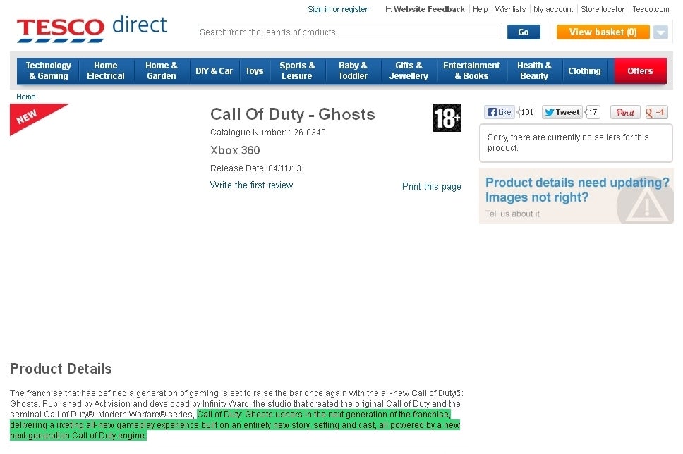 UK supermarket Tesco, which leaked the name of the game last week in a listing that was quickly pulled, spewed a product description that mentioned the inclusion of a new engine. It was spotted by All Games Beta before it was, predictably, pulled.