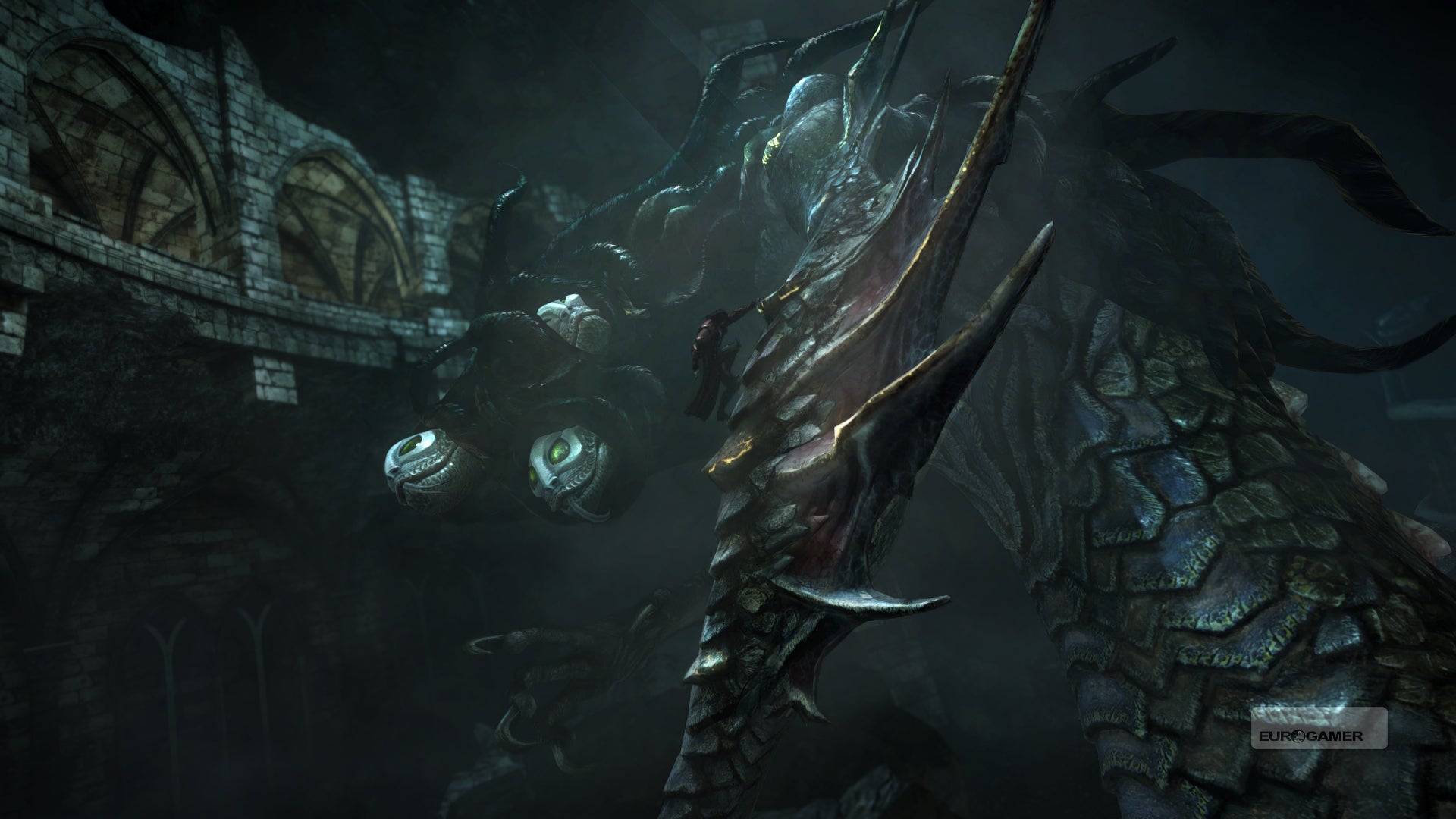 As Jeffrey explained in our Lords of Shadow 2 preview at E3, the magic system has been overhauled with the addition of the Void Sword and Chaos Claws - colour-coded weapons that have certain advantages in specific scenarios and have their own move-sets.