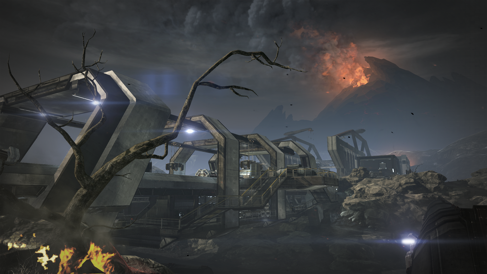 The planet itself was a fiery volcanic one, with volcanoes erupting on the horizon and embers flickering in the hot, dusty air around. Legion has gone to town with lighting and particle effects, as it can on PC. At one point an orbital strike thunders down, a giant dusty doughnut billowing out from the impact.