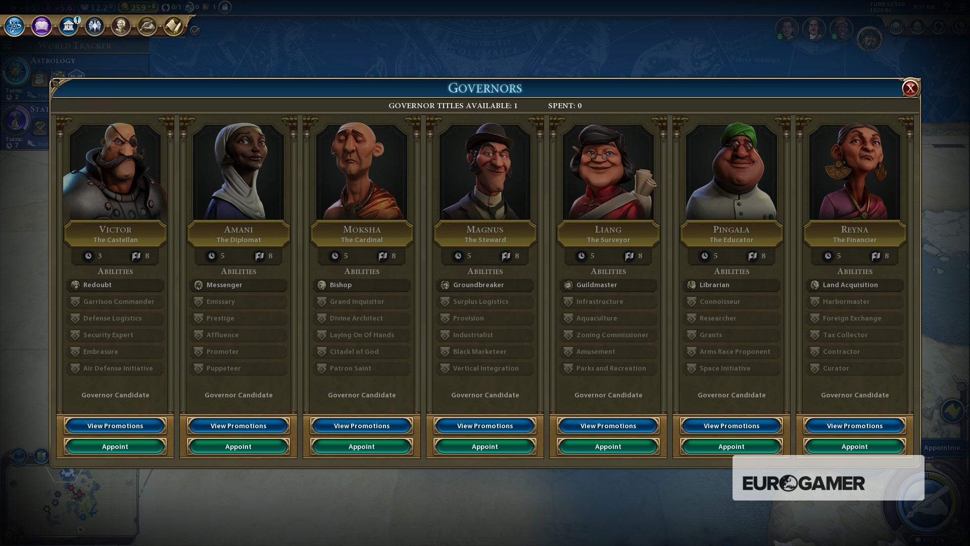 And that's where it ties in smartly with the other systems, because Dark Ages cause a drop in your cities' Loyalty - they can now rebel against you, or even be converted to another Civ - and Golden Ages boost it. Governors, which are earned like Envoys and placed in specific Cities to give them unique bonuses of their own, also affect Loyalty. Some are built around it, like the Diplomat, whilst the others just add a passive boost to it with their presence.