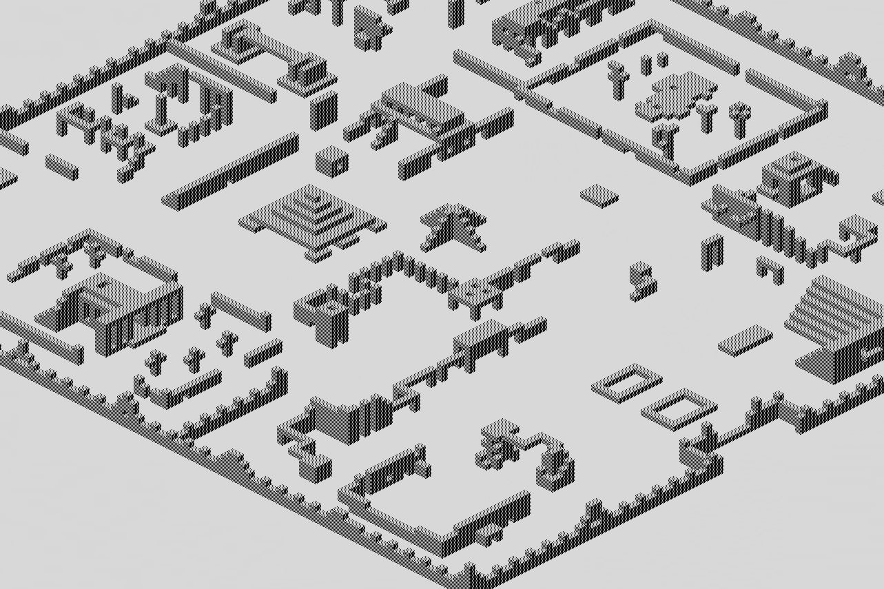 "I think that the effect was particularly potent when I was developing these first isometric buildings because it was an entirely new experience for me; home computers with graphical displays had barely arrived on the market. Relatively speaking, I suppose I was one of the first few people on the planet to build a 3D world and walk around inside it, and I did that for five months inside Antescher.