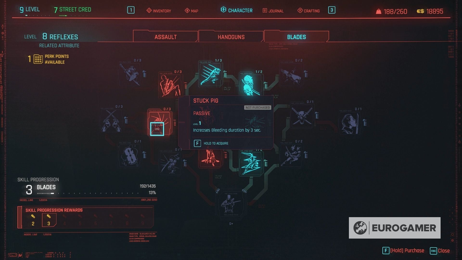 Where it's elevated is the systems that work behind the scenes. You can play it stealthily ( and entirely non-lethally, I think); you can play it as just a 'netrunner', hacking enemies into spontaneous combustion and taking over the contraptions around them; you can go in violently, which is the easiest and most varied. Blades, blunts, fists, pistols, assault weapons, shotguns and heavy LMGs all have their own sub-skill trees, as do the different sides of hacking and skulking and crafting, too. There's good depth to how these all tie together: you can modify your body with cybernetics, which can set you up for enjoyable feedback loops on your cooldowns and capacities. You can craft new weapons and outfits and new mods for enhancing those. You can grind for specific perks - your progress half-tied to how often you use a certain playstyle, half to overall level - which again feed back into the loop of all the other things at work. You can plan and strategize these builds forever, and replay again with something that feels very different.