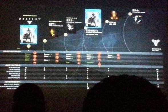 The image, below, reportedly was taken during an internal meeting, and first appeared on an Italian Destiny community's Facebook page on 1st October 2014 - at least that's the earliest publication date I can find. It has since been posted to the Bungie.net forum, a Destiny-focused Twitter account and, more recently the Destiny sub-Reddit, which is why it's only now getting attention.