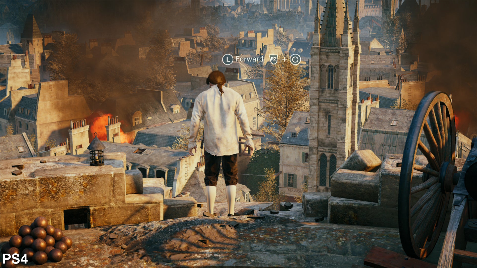 Assassin's Creed Unity runs in 900p across both consoles, sacrificing the raw clarity and additional sharpness of a native 1080p presentation for massively increased detail levels and vastly superior effects work. Anti-aliasing seems to be covered by a variant of FXAA, instead of the custom SMAA solution seen in Black Flag. As a result, the combination of the upscaled framebuffer and the anti-aliasing algorithm adds a considerable amount of blur to the image for a 900p game. However, the good news is that jaggies are kept in check and the core upgrades in texture quality and environment detail still manage to shine through, even though they aren't quite as sharp and defined as we expect from a new generation release.