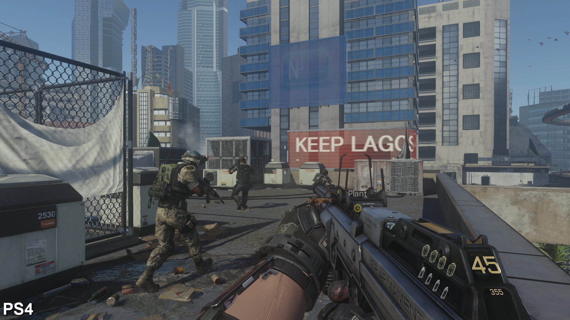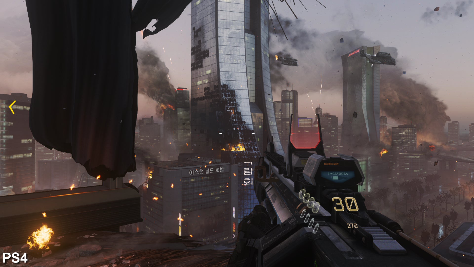 The resolution issue is an interesting discussion point. For the most part, it works as you'd expect. According to our measurements, the bigger battles in Advanced Warfare's opening stage do indeed operate with a cut 1360x1080 resolution on Xbox One. Clarity on geometric edges is affected - producing blurrier outlines in our matched shots below - as well as creating a muddier appearance to sub-pixel sampling across trees and grass. The opening shot of Seoul's skyscrapers is a good example of this, where window details on each building appear cleaner on PlayStation 4.