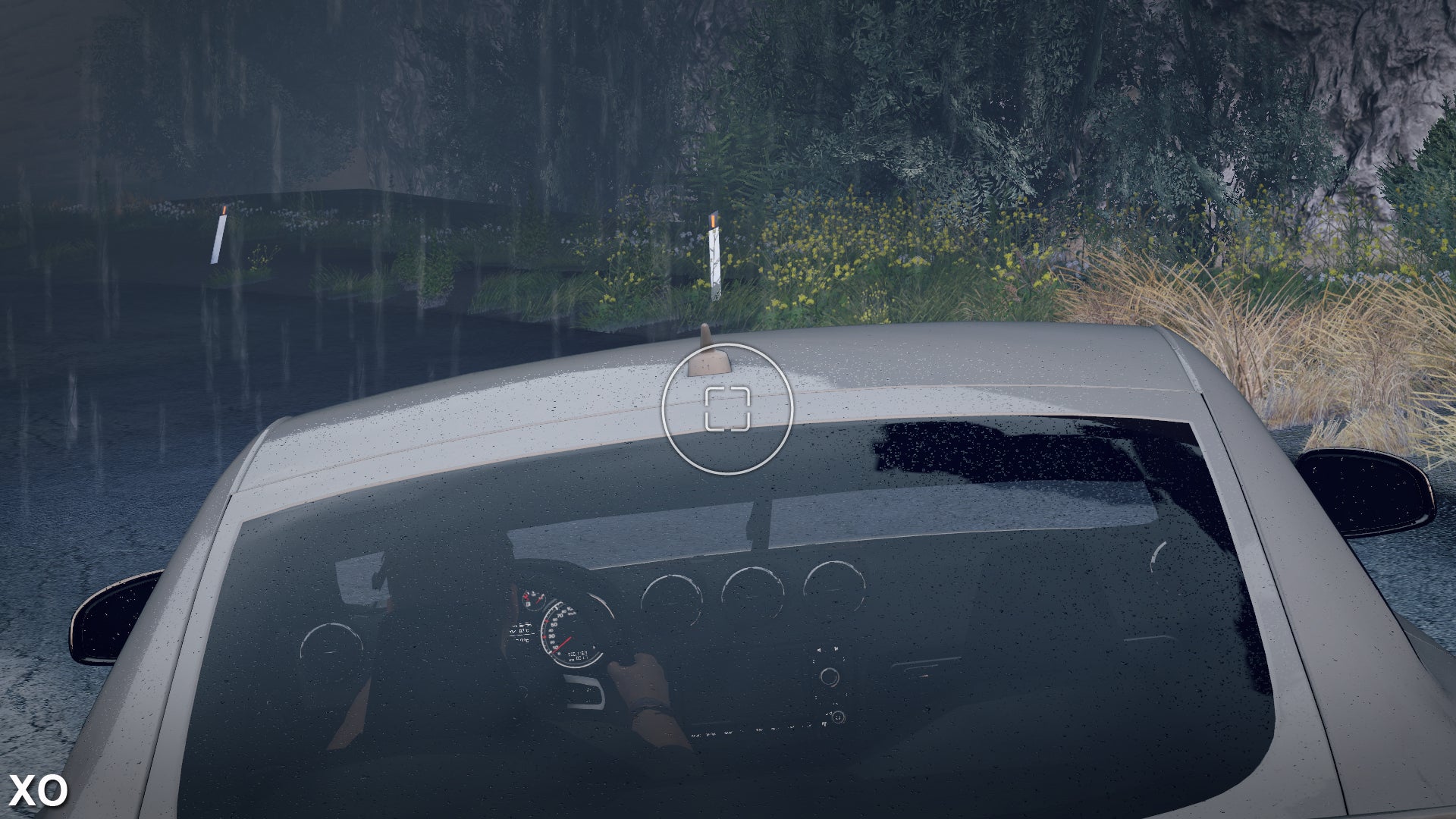 More dramatically, the appearance of water on the car is simplified and less dynamic, with the utilisation of a nice water shader effect that creates attractive, but relatively static droplets. The beads of water are not impacted by speed or direction and do not streak realistically. The windshield wipers simply eliminate these droplets with each pass before more are formed, but the effect is a simple texture that gives the impression of wiping away the rain. In comparison, it really seems as if water is being pushed around dynamically in DriveClub. It should also be noted that, unlike DriveClub, Horizon 2's wipers appear to function in just two modes; on or off.
