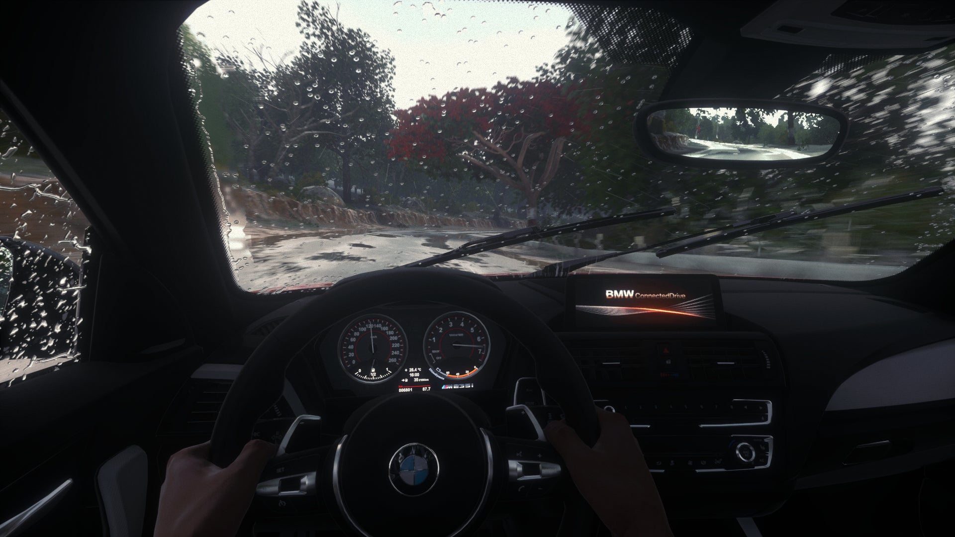 The new weather options are available straight away after installing the 1.4GB patch. As with cloud cover and time of day, weather effects are fully customisable in certain modes, allowing the user to toggle between dry racing alongside light and heavy precipitation conditions. On top of that is a dynamic option that is perhaps the most interesting of the bunch, allowing the game to transition realistically between bright sunny days and dark stormy nights. The effects are created from a variety of different elements, each worthy of focus in their own right: