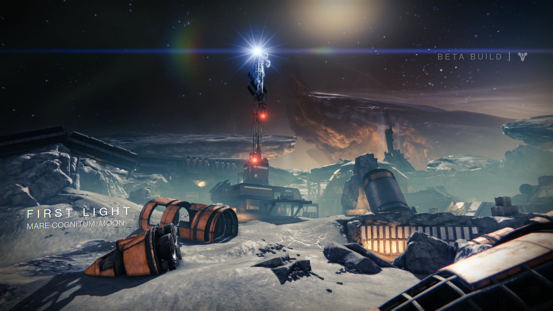 While largely unchanged on visual level from its alpha state, the PS4 beta is achieves some impressive enhancements to its lighting. Crepuscular rays are among those that make the cross-gen leap to PS3, allowing lines of shadow to streak past any object - such as your ship - obscuring the moon's lighting. A JJ Abrams-style anisotropic lens flare and corona bloom also embellish smaller directional lights - though the intensity of each is muted by comparison to the PS4.