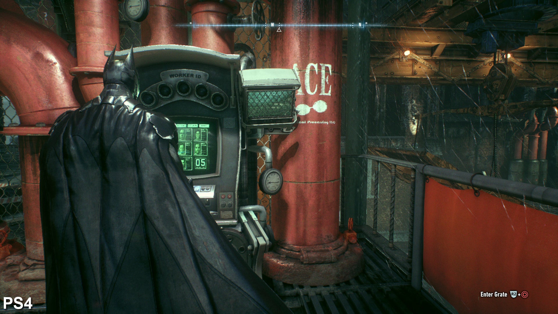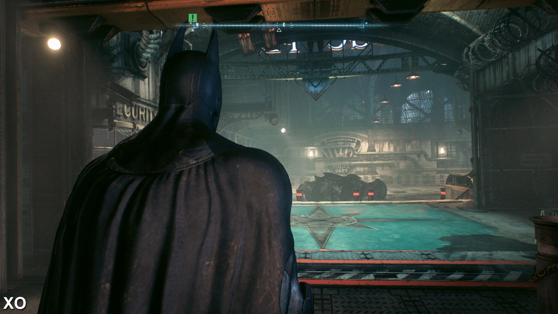 From top to bottom, these two versions are otherwise identical. The resolution difference is the only aspect that divides the two visually, and both deliver results eerily close to Epic's 2011 demo. The only apparent downgrade from that original vision is in reflection detail; Arkham Knight's neon signs rarely appear as sharp as that demo's, and nor are their positions always relative to the scenery. Even so, it's an effort that comes close to an ideal that few suspected would materialise as a full game, let alone one with a Batman theme.
