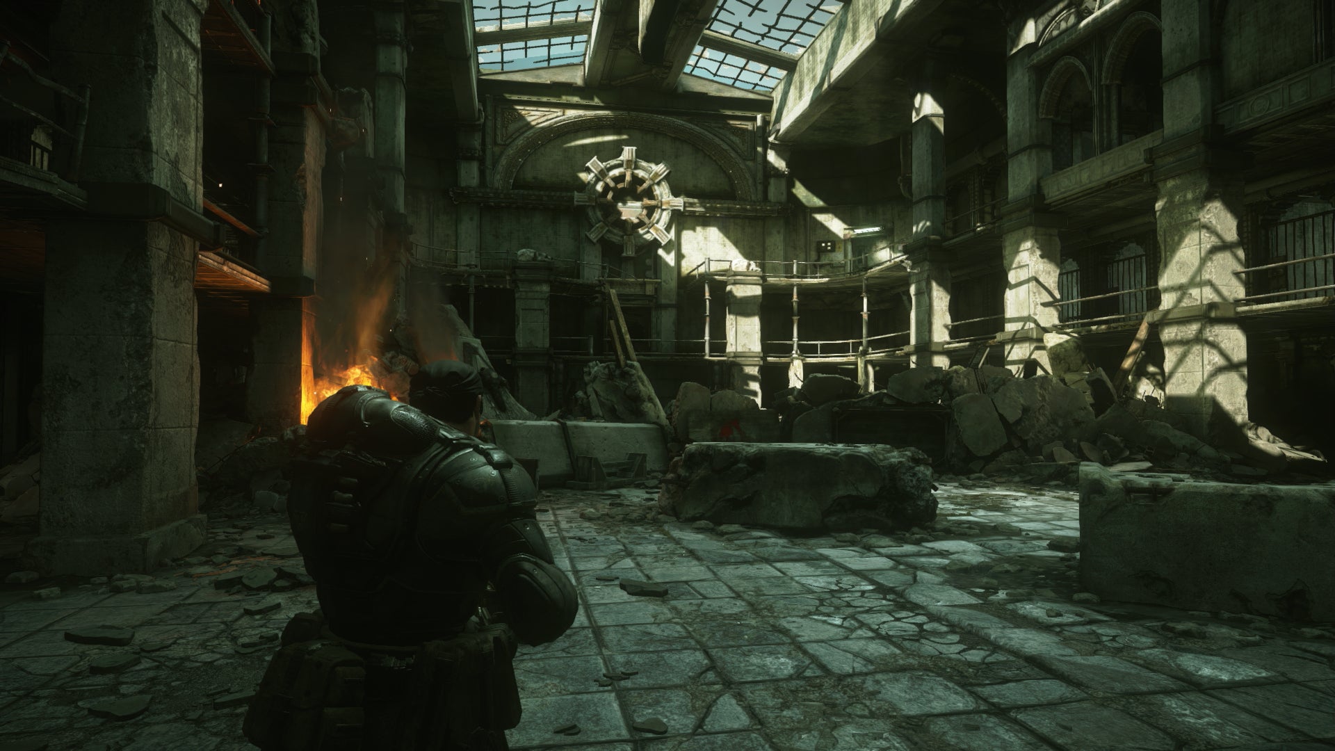 On the technical side we had to do a few things to support this. First we build out a big database of all of the assets in Gears and what levels they were referenced from. This helped the art team in planning asset creation. Our tools team further analysed the meshes and determined where objects were scaled and if that scaling was uniform so we had an idea of how many additional assets would have to be made to keep the texel density consistent throughout the game. The original development team was very creative and efficient in re-using assets but there are visual tradeoffs we didn't feel were acceptable in 2015.