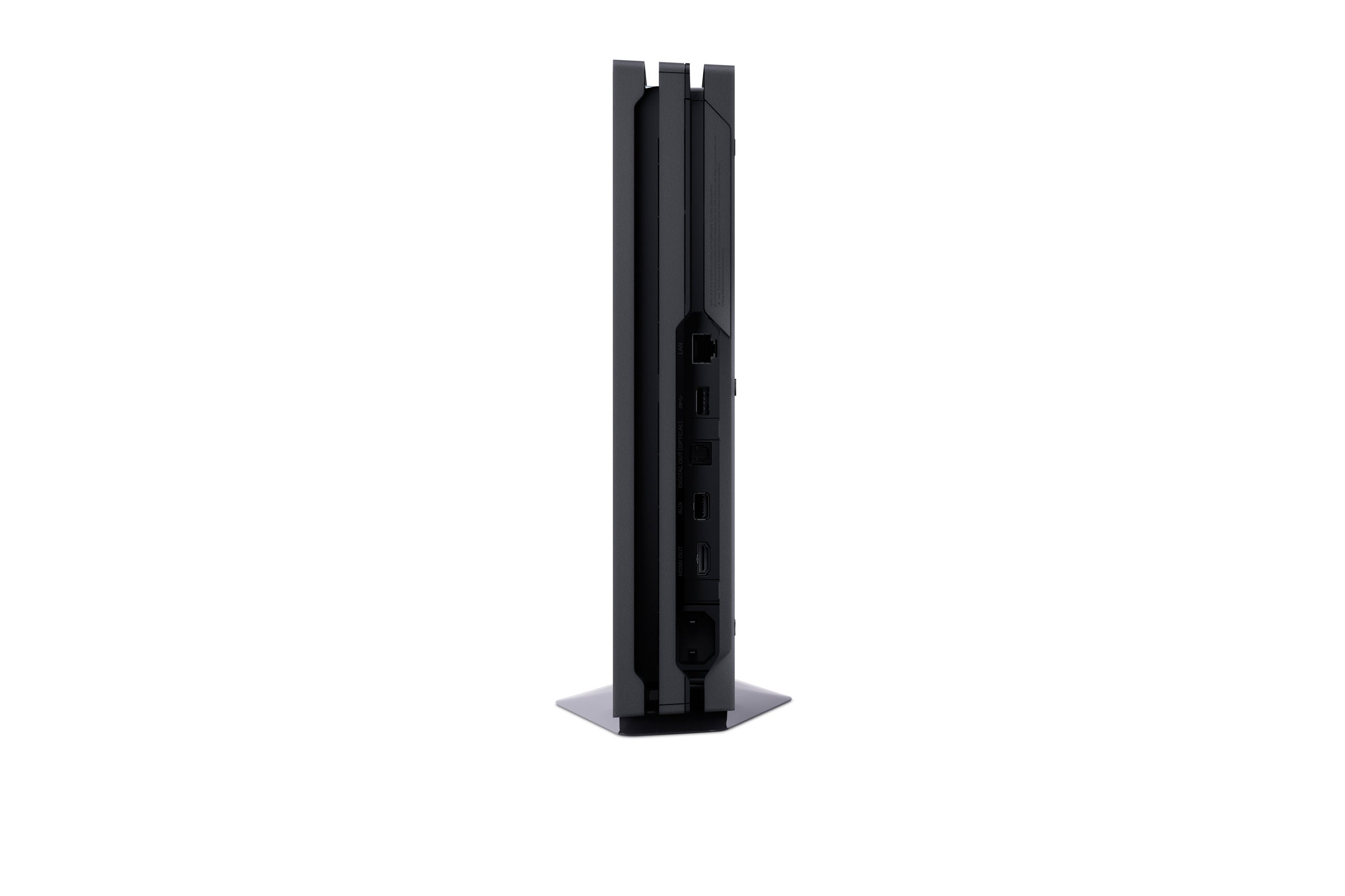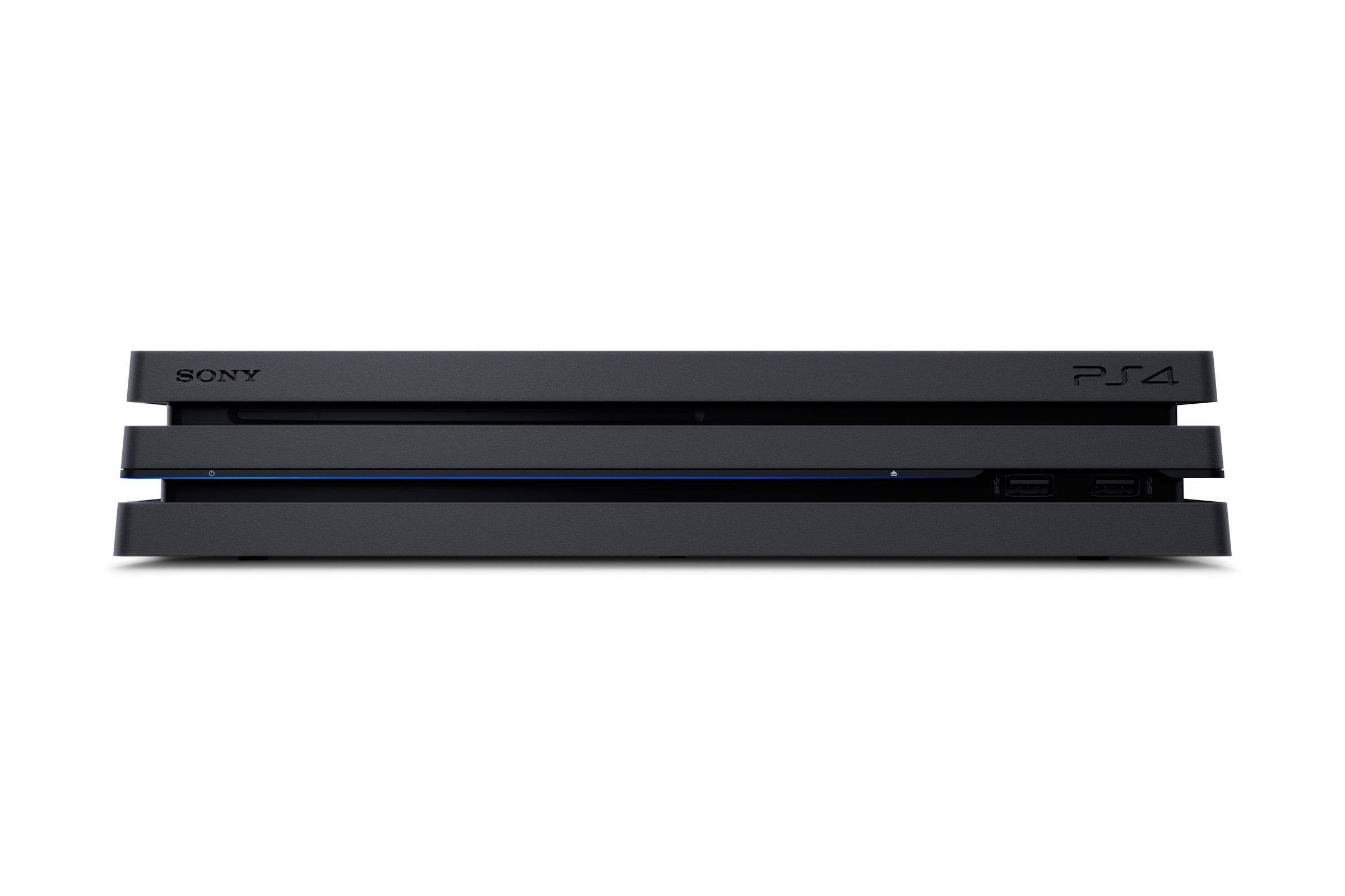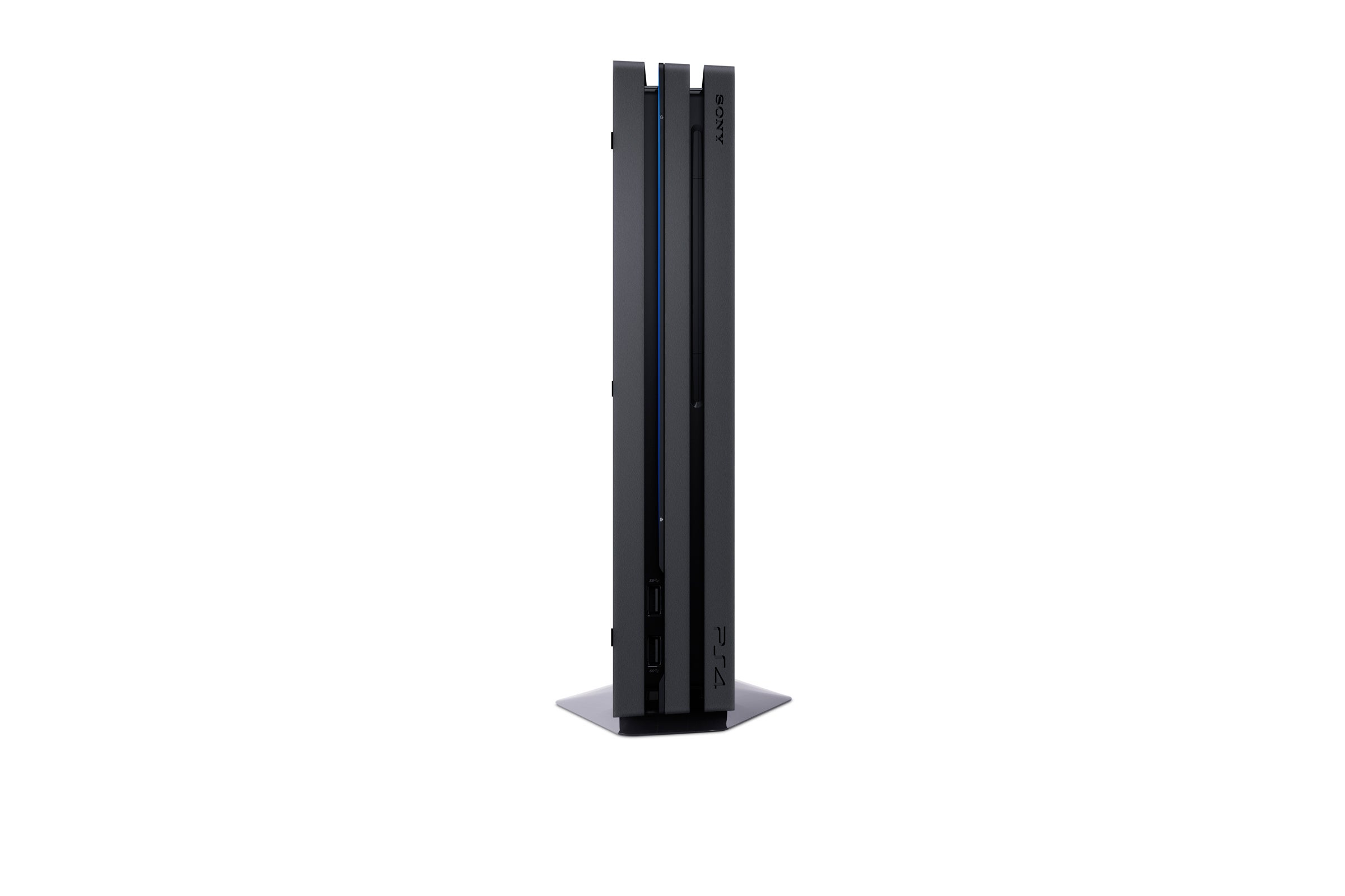 But first, let's talk about the actual box itself. It turns out that the PlayStation 4 CUH-2000 'Slim' leak was even more significant than we realised. It was a preview of the design language that would carry across the entire PlayStation line, and the PS4 Pro (CUH-7000, designation fans) looks very much like a bigger brother of sorts - a bigger, fatter, triple-decker but with very similar design cues, right down to the collection of PlayStation symbols on the underside of the unit. Curiously, the LED strip-light found on the side of the CUH-1000 series PS4 has been relocated to the front of the machine, recessed into the lower 'slash'. And yes, finally, we have a rear USB 3.0 port in addition to a brace at the front.
