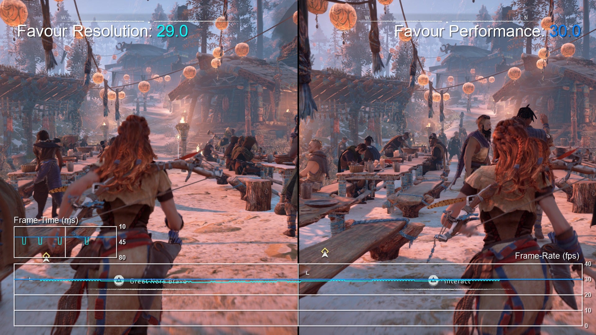 Resolution is pegged to 1080p when you enable the 'favour performance' mode, but instead of letting the frame-rate run as fast as it possibly can, Horizon opts to use GPU power to more closely lock to the target 30fps instead. It's an interesting idea, but fundamentally not that much of a game-changer - simply because Guerrilla's performance at 4K is already so good with only very minor drops (if any) in most areas.
