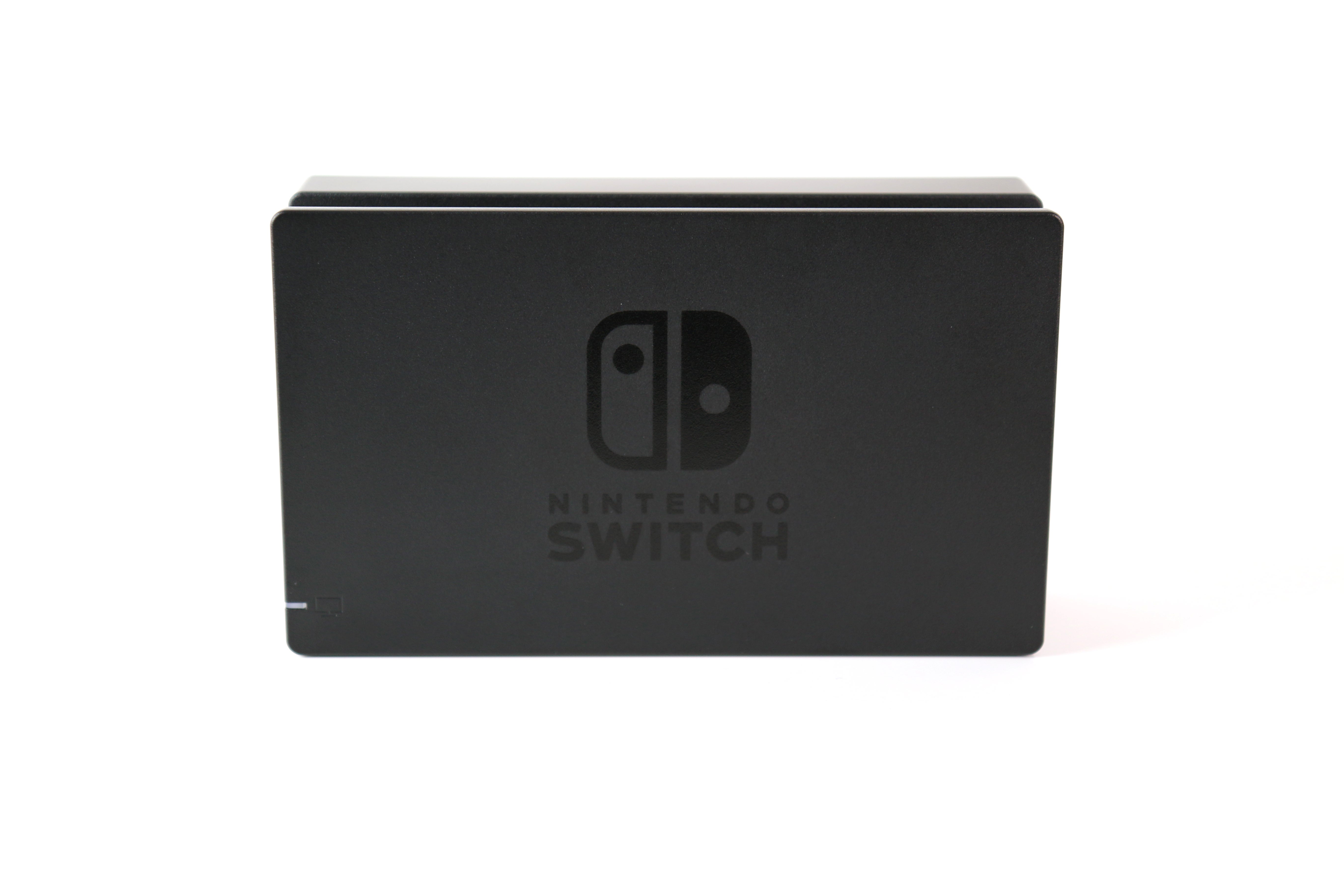 The last part of the package is the Switch dock, an innocuous, hard plastic block, that interfaces with the USB-C port at the bottom of the tablet. Nothing is included in the dock in terms of processing power here; it simply gives the tablet access to more power to in order to tap into higher clocks on the Switch's GPU and memory. Docking also gives you access to three USB ports, and of course, a HDMI output to send the image to your TV. All the wiring is hidden at the back, meaning it's quick and easy to just guide the tablet down, and go from there. But as a side note, you must use the dock to connect the Switch to a TV. A standard USB-C to HDMI converter or cable won't do anything - and yes, we tried it.