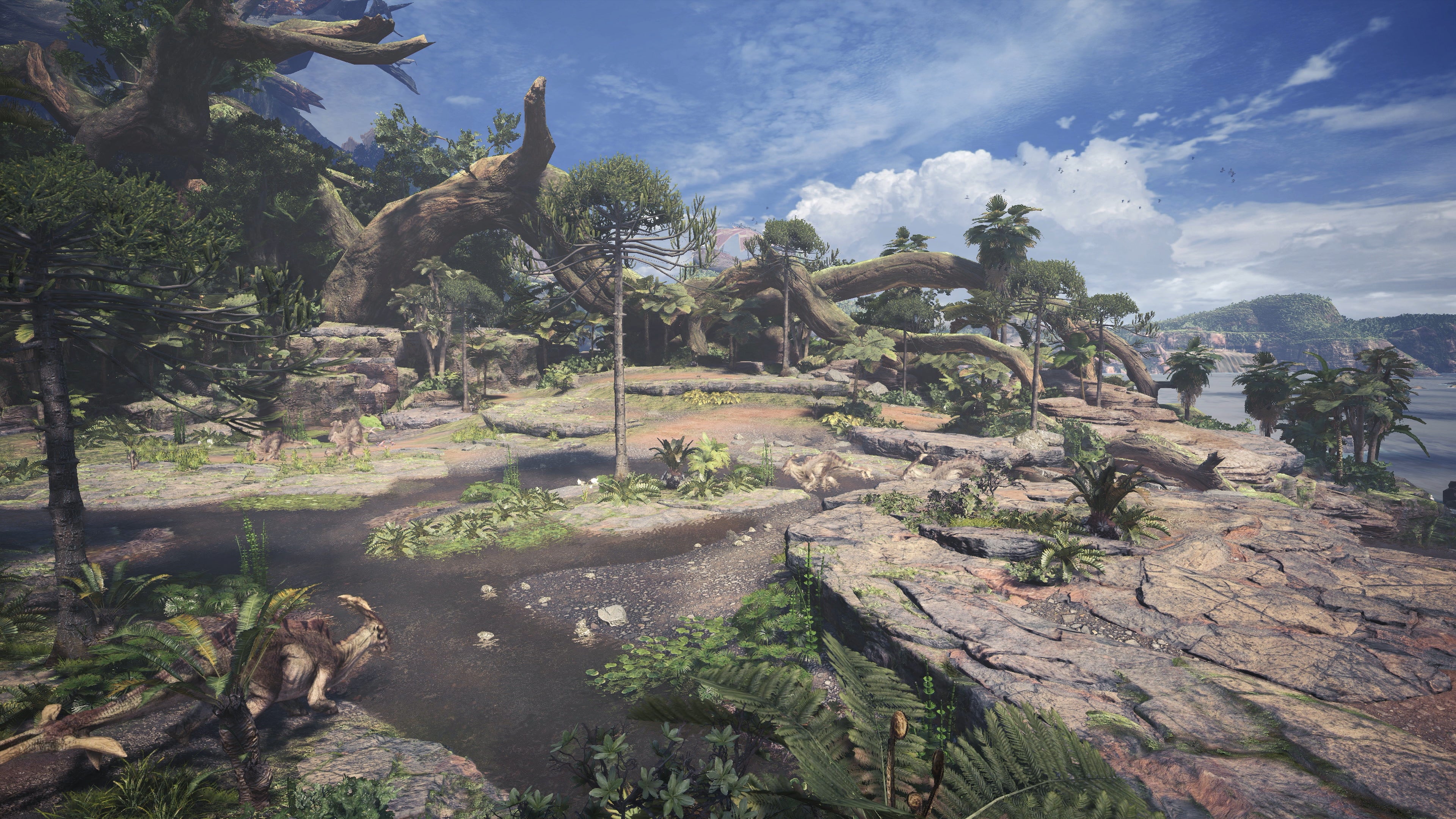 This massive new world is now filled with detail previously impossible on less powerful hardware. Texture work is sharp and clean with generous layers of stone, sand and mud across the terrain. The extra memory available on modern consoles enables a level of fine detail that offers a night and day improvement over the last 3DS title. It may not be cutting edge compared to the latest and greatest open world games (just as an example - reflections on water surfaces are basic approximations at best), but it looks great and is a significant upgrade over any prior title in the series.