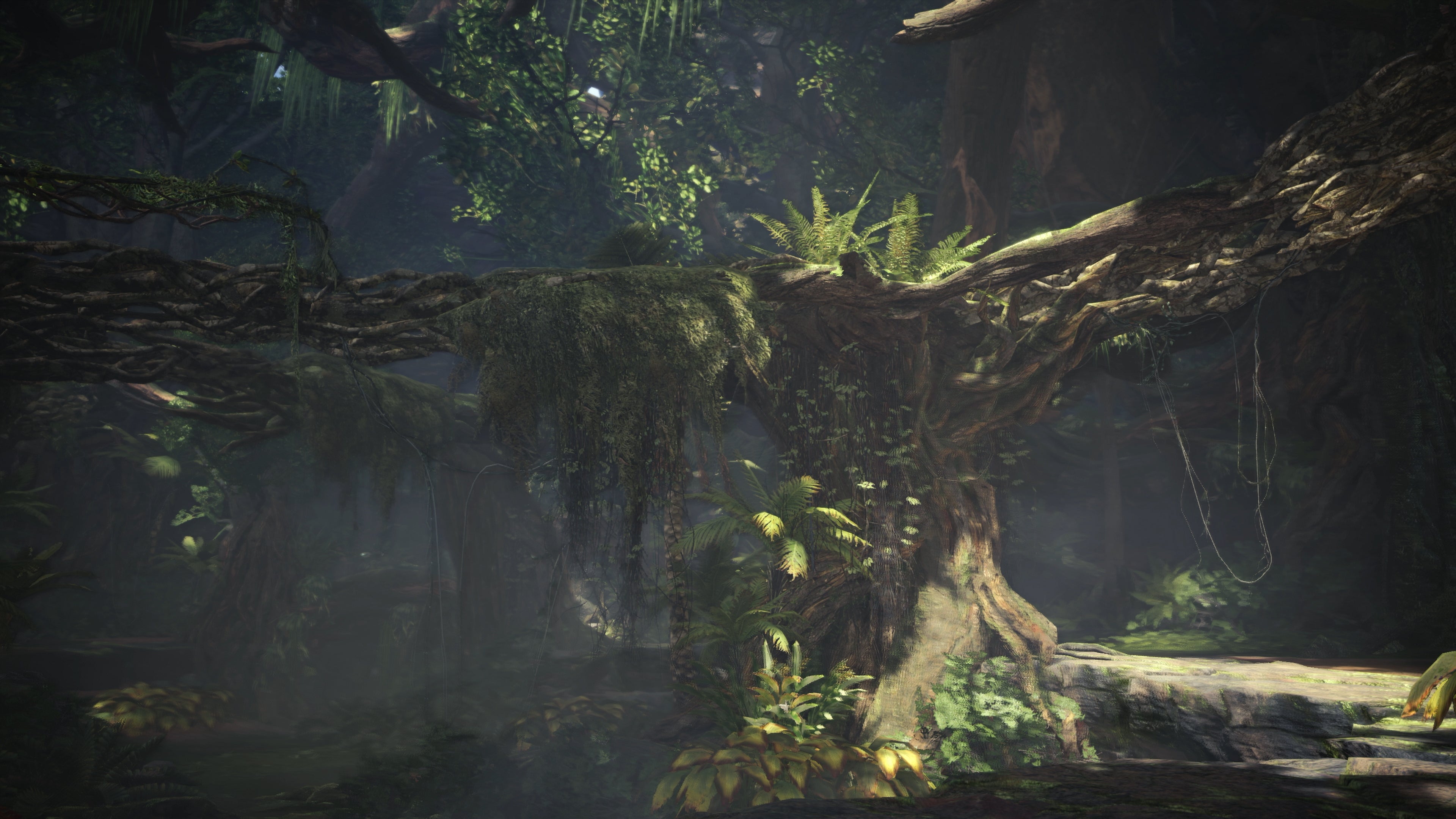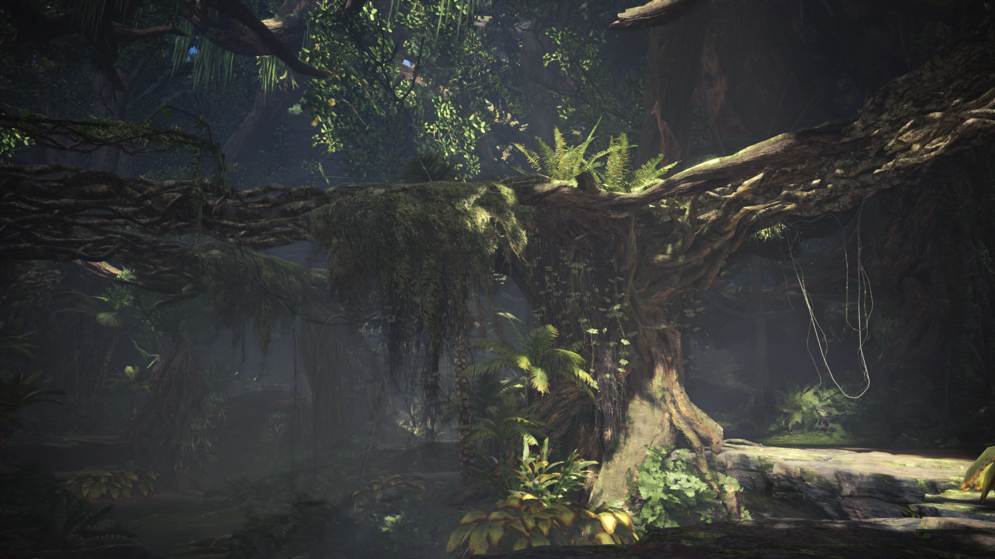 At its core, Monster Hunter World makes use of Capcom's proprietary MT Framework engine, which has a history of supporting large environments and richly detailed creatures, as seen in visually arresting titles such as Lost Planet 2 and Dragon's Dogma. Compared to previous installments in the series, MHW is no longer split up into smaller zones, enabling seamless exploration of the world alongside more active hunts. On top of that, monsters can no longer run between loading points - the thrill of the chase is wide open and seamless. What's interesting here is that you can fast travel to any camp in the world instantly, suggesting that each major environment might be fully loaded into RAM rather than relying on streaming.