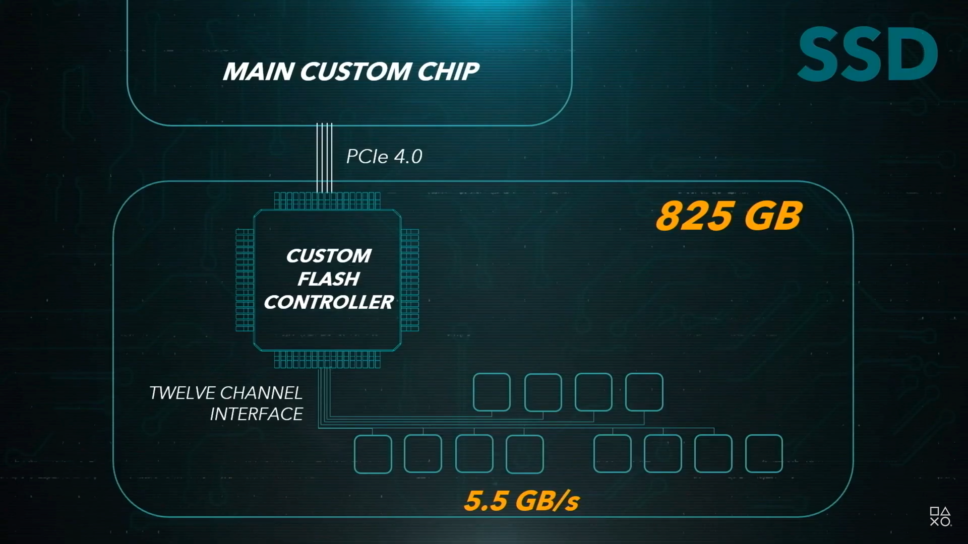 Delivering two orders of magnitude improvement in performance required a lot of custom hardware to seamlessly marry the SSD to the main processor. A custom flash marries up to the SSD modules via a 12 channel interface, delivering the required 5.5GB/s of performance with a total of 825GB of storage. This may sound like a strange choice for storage size when considering that consumer SSDs offer 512GB, 1TB or more of capacity, but Sony's solution is proprietary, 825GB is most optimal match for the 12-channel interface and there are other advantages too. In short, Sony had more freedom to adapt its design: "We can look at the available NAND flash parts and construct something with optimal price performance. Someone constructing an M.2 drive presumably does not have that freedom, it would be difficult to market and sell if it were not one of those standard sizes," Mark Cerny says.