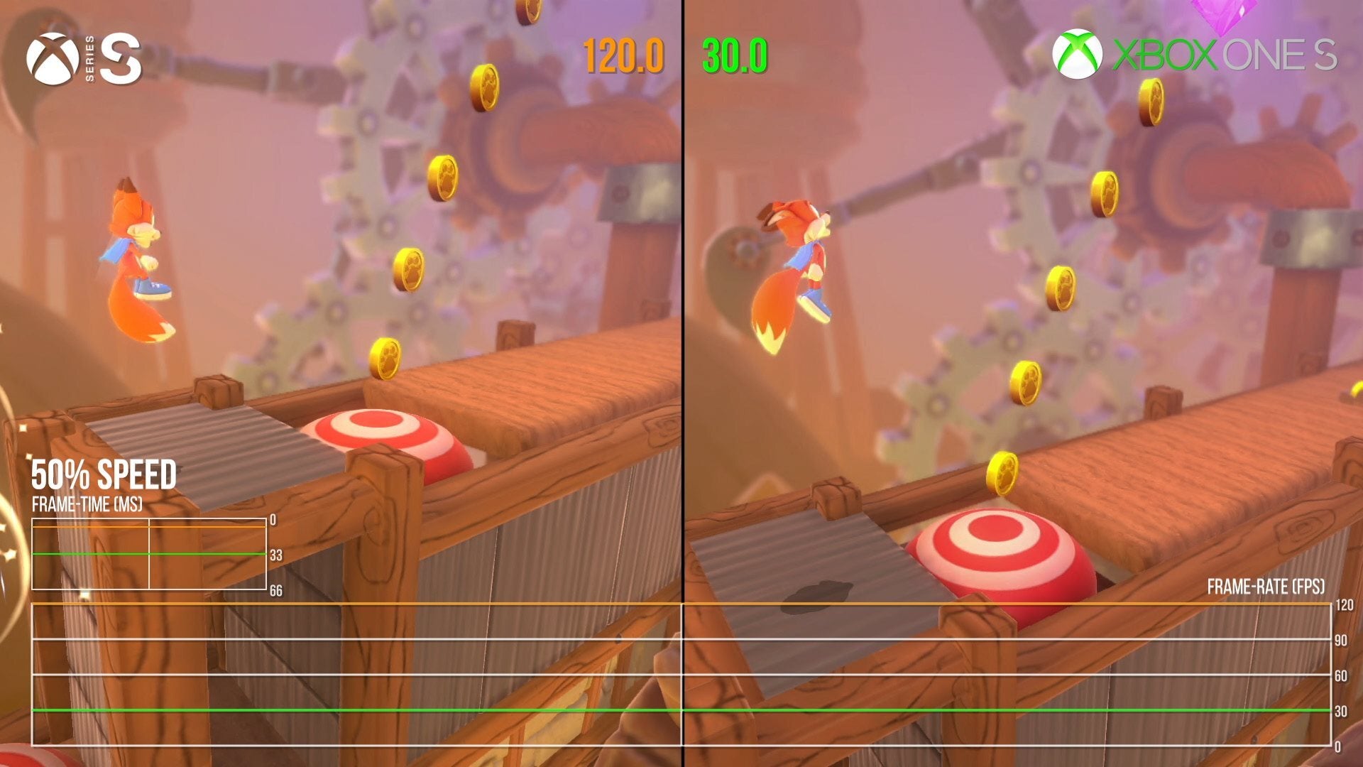 In prior PR from Microsoft, the Xbox team have talked about doubling performance and at the basic level, that's exactly what's delivered. All of the five titles revealed today operate at 30 frames per second on Xbox One S - and four of them now run at 60fps on both Xbox Series consoles. The exception is New Super Lucky's Tale: this targeted 4K60 on Xbox One X and 1080p30 on Xbox One S. This is bumped up to 4K120 and 1080p120 on Series X and S consoles respectively - so yes, that's a quadrupling of performance comparing One S to Series S. There are no other changes to the game in terms of visuals, but the increase to performance is palpable: as we saw in Ori and the Will of the Wisps, platform games deliver a beautifully crisp experience at 120fps - and the Series consoles fully deliver. New Super Lucky's Tale is on Game Pass, meaning easy access for Series users to check this one out.
