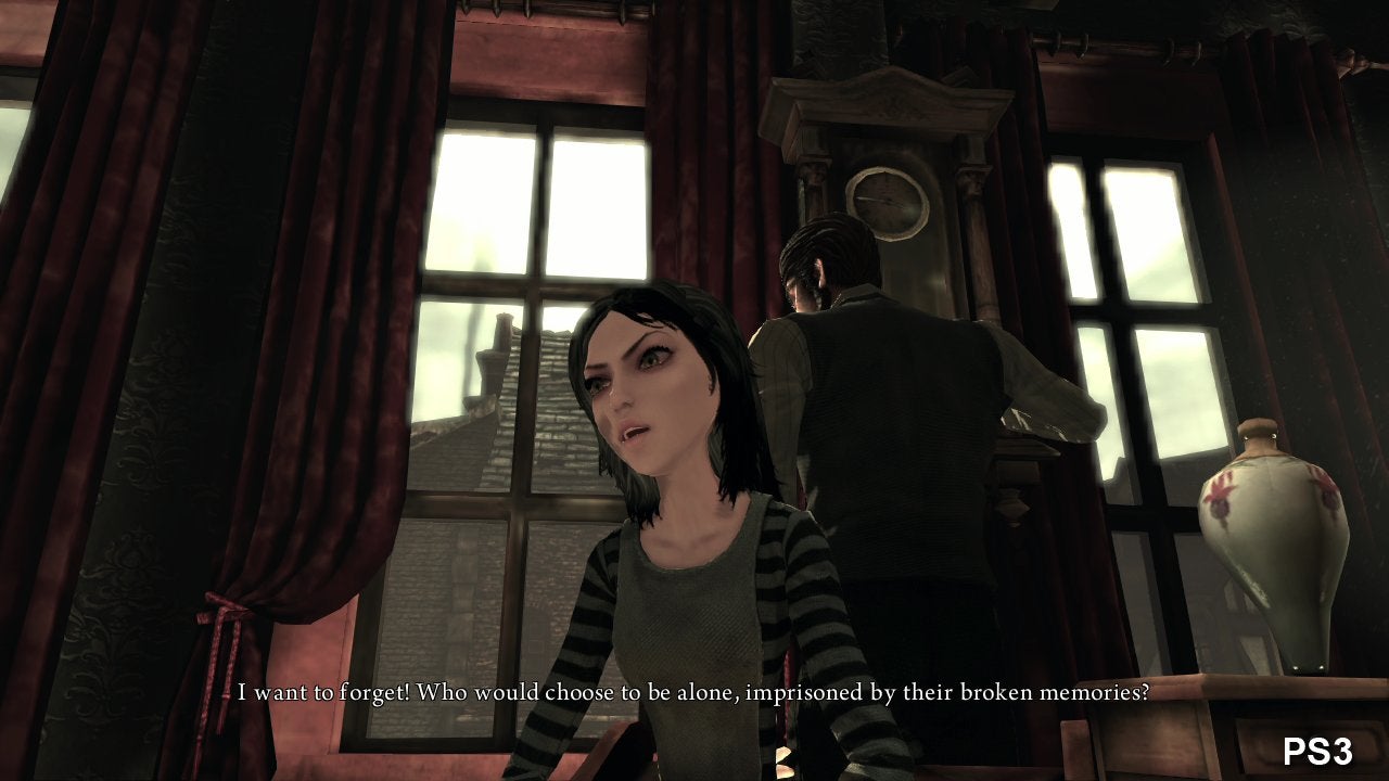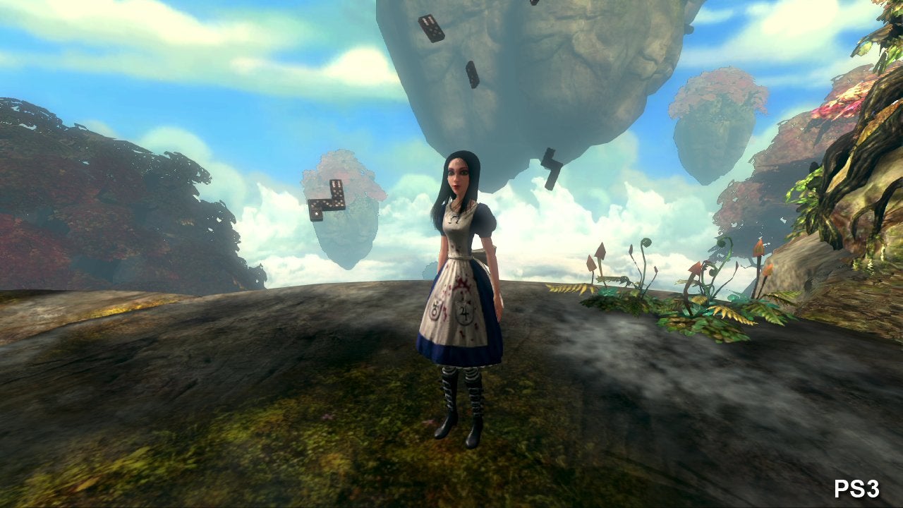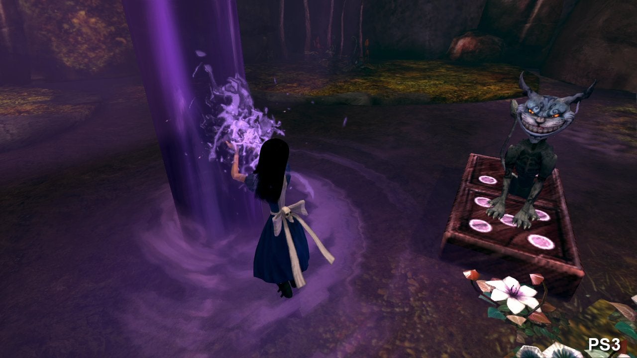 Other than that, there are a few other graphical oddities that crop up from time to time. Some alpha-based effects appear to suffer from texture compression issues on all three formats at various points, while some of the shadows cast on Alice can look a little rough when they flicker and glitch in and out of view when moving through the environment, something which occurs more often on the PS3 version of the game.