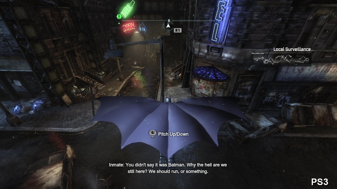 Similarly, the omission of SSAO isn't especially an issue here, either. The effect was subtle and very difficult to pick up in Arkham Asylum within the game's overall aesthetic. Its omission here isn't really a problem considering the amount of depth on offer with the existing shadowing model.