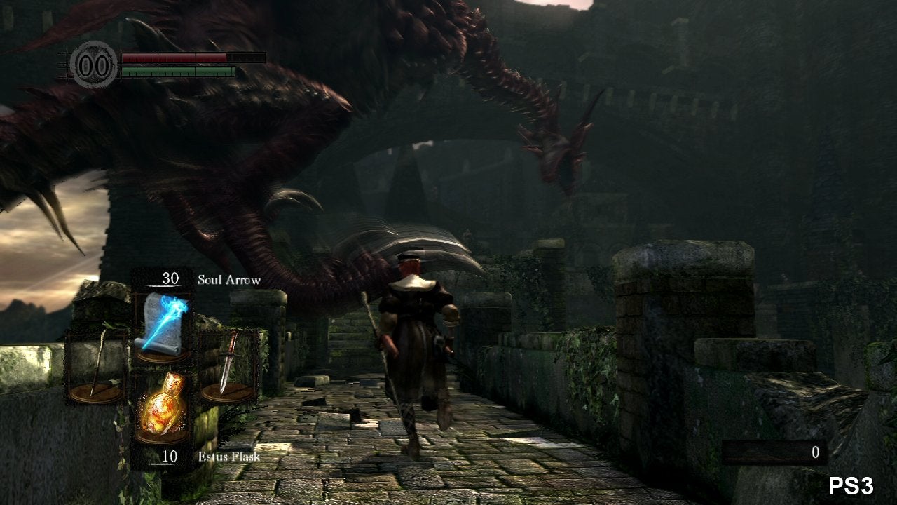 Fantasy games are rarely so horrifying as Dark Souls can be, and it's a pleasure to see another take on the same visual references put forward by Demon's Souls just two years ago. Although the world of Boletaria has been exchanged for Lordran, much remains the same. The long bridges guarded by red wyverns and undead hoplites still show From Software's love of old Fighting Fantasy gamebooks, and the winding, eldritch castle passageways continue to succeed in baiting the reckless gallivant into an untimely end, while rewarding the more patient, methodical player.