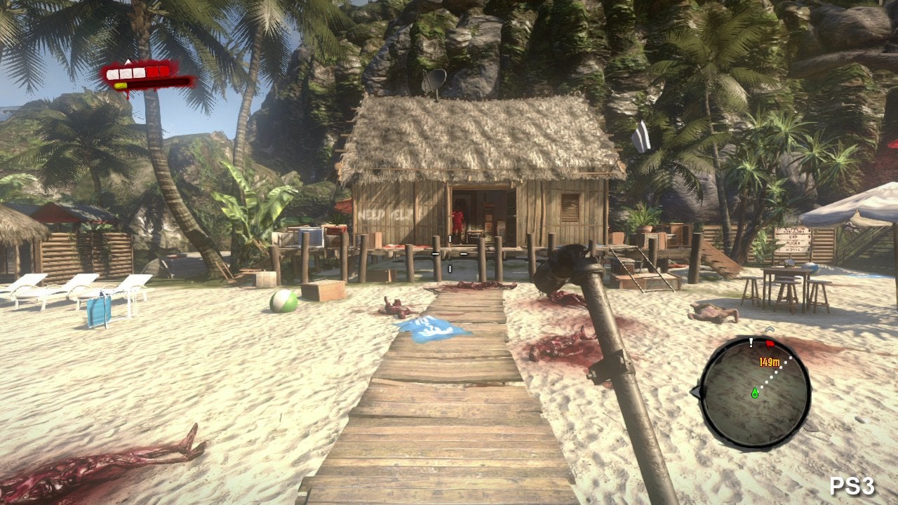 Outside of the small differences in resolution and image quality, there's very little to separate the two versions of Dead Island in terms of the graphical make-up of the game. The PS3 code features a slightly more intense motion blur implementation, while the gamma difference emphasises some of the game's post-processing effects - a good example of this is the Thug zombie in the first cut-scene situated at the Lifeguard station.