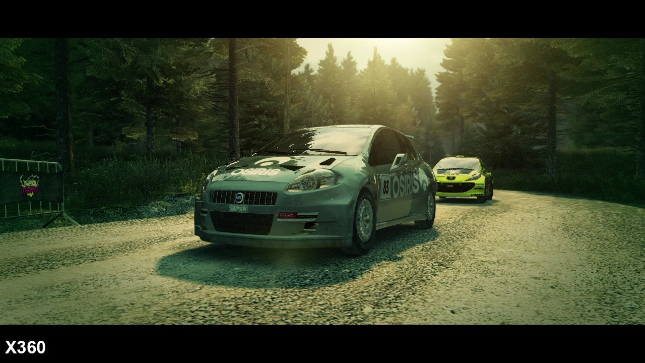 Looking at the visual make-up of the game, it appears that little has changed from previous EGO-fuelled racing games: we're looking at a native 720p rendering solution on both formats, along with 4x multi-sampling anti-aliasing (MSAA) on the 360, and Quincunx (QAA) on the PlayStation 3. Usually when QAA is employed we find that there is a distinct blurring of the visuals, covering both geometry edges and texture details. But as with DiRT 2, other elements in the visual make-up of the game help to bridge the gap between the two versions.