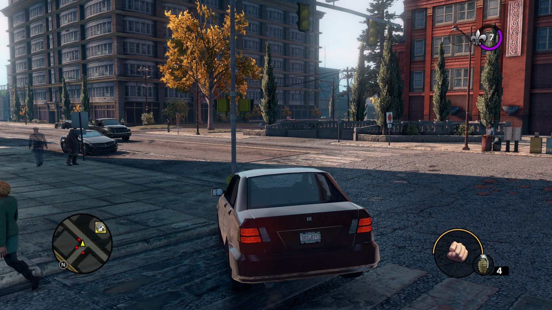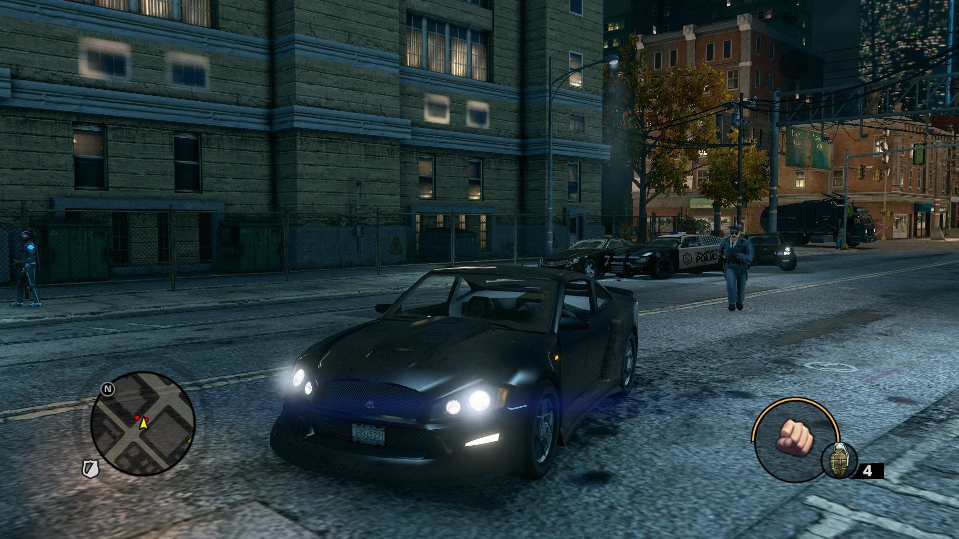Saints Row: The Third also represents a large graphical improvement over the second game in the series. The change in art direction in this latest instalment in combination with more restrained use of normal mapping and specular highlighting on some surfaces creates a more realistic look to the environments. A closer look at the texturing also reveals quite a bit of subtle detailing in many places: the small cracks that appear on the road and pavements, and the degradations manifesting on the walls of old buildings found throughout Steelport.
