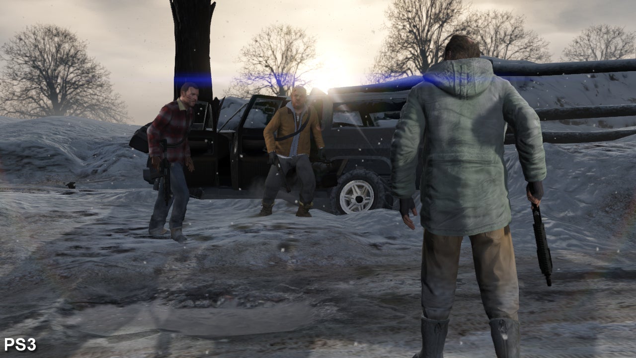 Normally we'd put this down to inferior texture filtering, but it's often the case that higher-grade ground textures never pop in during certain cut-scenes either. Best shown in the very first clip in the video, based around the O'Neill brothers' farm, the flatness of these surfaces is severe enough to prompt a retrial with two other 360s we had available. However, in every case the PS3 turns up trumps with sharper textures, proving it's not the fault of a single borked console - this is the reality for all 360 owners.