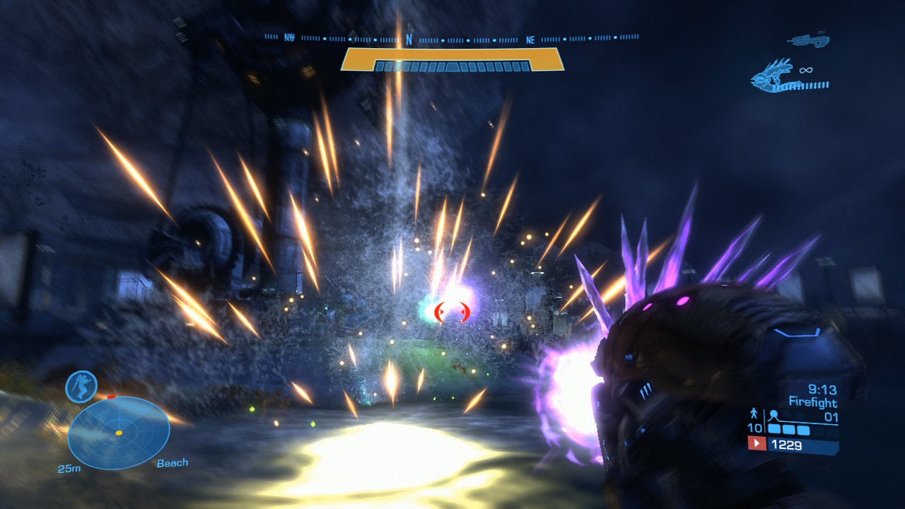 Reach manages to up the resolution to nigh-on full 720p, while retaining HDR and employing an inordinate amount of dynamic lights - every needle from the needler is a bespoke light source, for example. It strongly suggests that another major innovation is the implementation of some form of deferred rendering - something we can confirm for certain if our planned tech interview with the Reach team comes to fruition.
