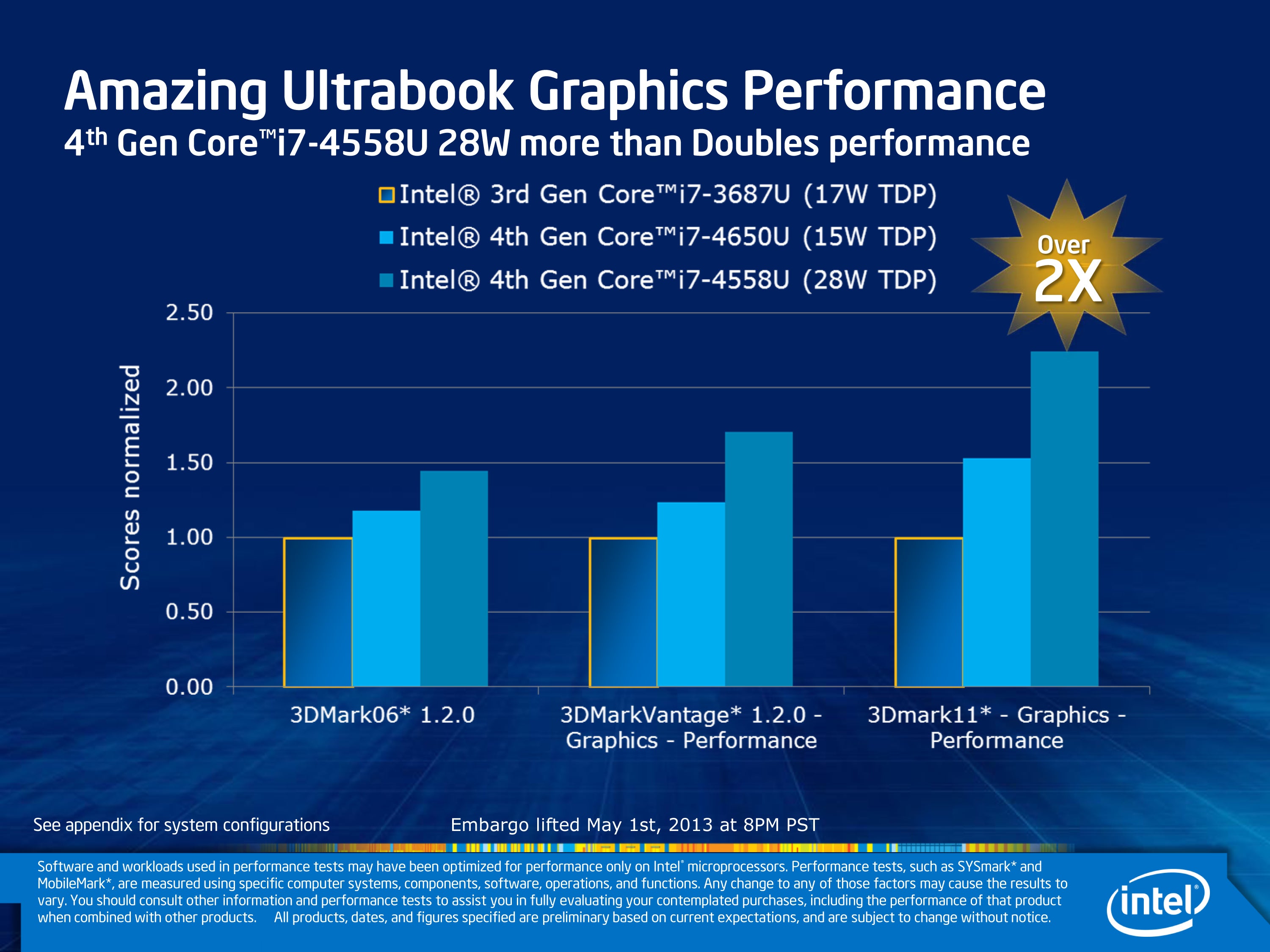 "From HD 5000 up to Iris Pro, the fourth gen Core processors offer a significant bump in performance over the current Ivy Bridge line."