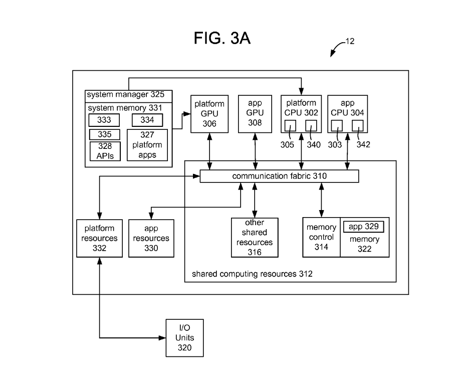The principle idea behind the patent is in providing a framework for integrating "platform" and "application" processing into a single system where both systems can run concurrently, but the overriding concept is the scalable architecture that allows for more advanced hardware revisions (with improved CPUs or GPUs for example) to be rolled out over time. One diagram even adds a third CPU/GPU set-up - shared processors that can lend a hand to the other two, for reasons unknown.