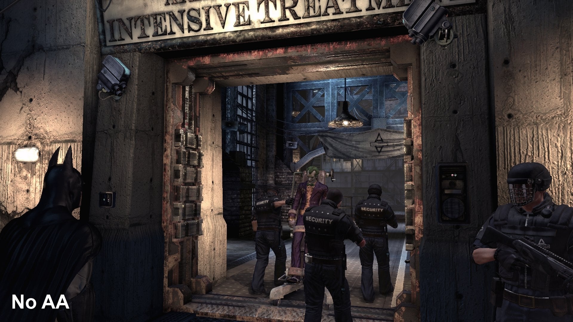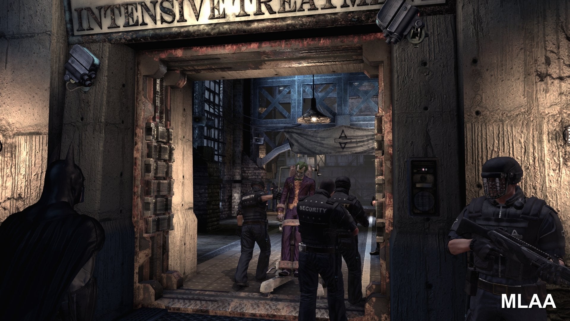 In the Batman scene we can see both the good and bad of MLAA. Prominent foreground edges are effectively smoothed off, but far off geometry exhibits exactly the kind of pixel-popping that Andersson warned against. The blur effect is constant regardless of depth, making sub-pixel edges actually much more prominent than they are when there is no anti-aliasing in effect.
