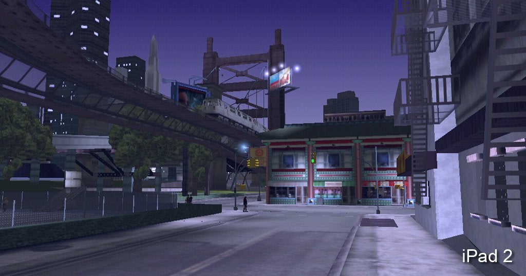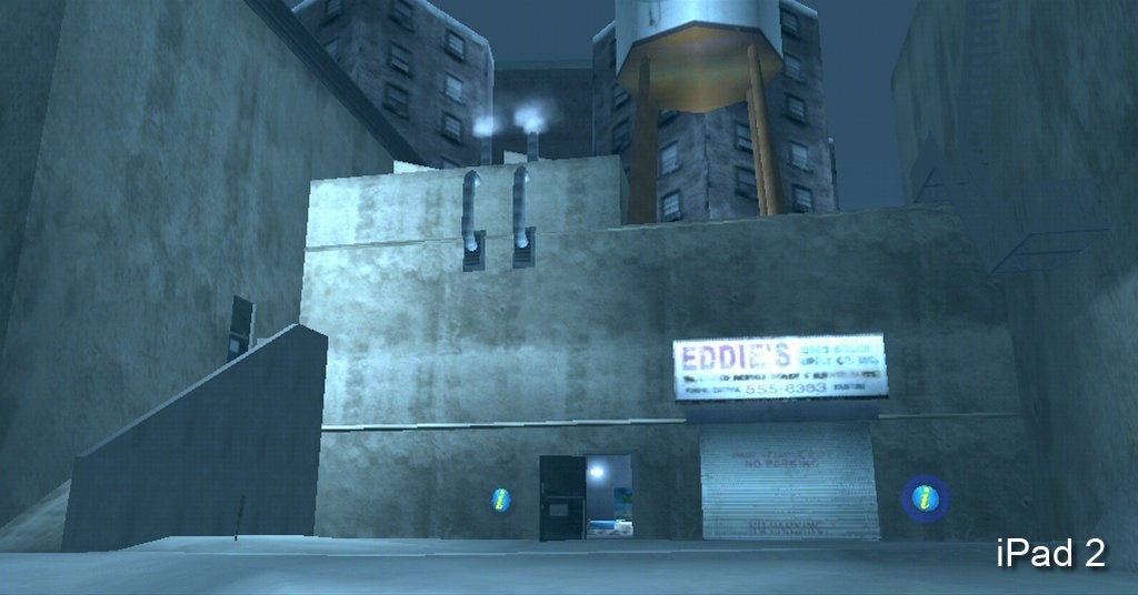 All told, the reality is that GTA3 mobile - on our iOS version at least - works fine, but feels somewhat unpolished in places compared to the other versions of the game, even the weakest PS2 release. Geometry pop-in is much more pronounced than it is on the legacy versions of the game and ground-based shadows seem to glitch when travelling up hills with steep gradients. Despite offering up the best graphical quality on mobile, the iPad 2's GPU hardware features also seem to be overlooked in some areas. The tile-based deferred rendering setup of the PowerVR graphics core makes 4x multisample anti-aliasing an inexpensive upgrade - something we've seen implemented with much success on Infinity Blade and Real Racing 2 HD - but it's not utilised here and that's a shame.