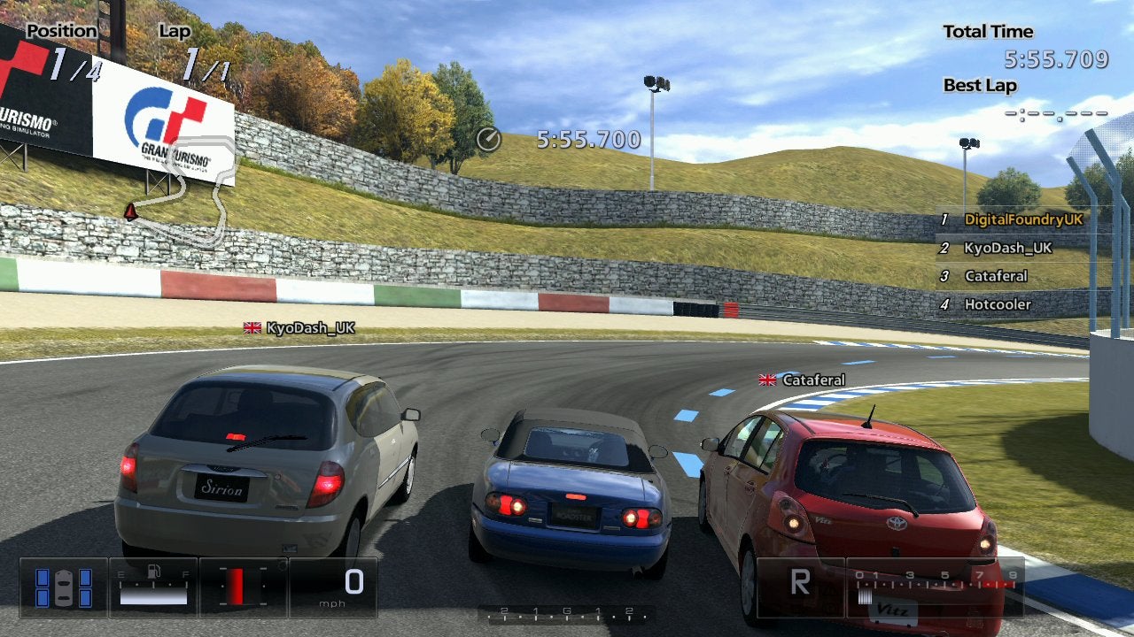 Next up, Gran Turismo 5. It's safe to say that the online racing experience has never felt particularly robust and the nature of the client-side prediction feels rather agricultural. You can test this by yourself simply by ramming into another car in any online race. The collision itself will be corrected a split-second later, and your car repositioned with a visible jump.