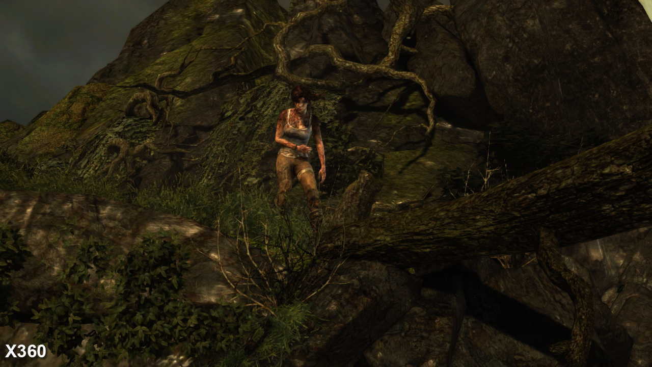 With regards to image quality Tomb Raider renders natively in 720 on both consoles, but it's clear that the presentation on the 360 isn't always quite as sharp and striking as its PS3 and PC counterparts. Images appear softer on the platform with the intricate artwork smoothed over to a higher degree, while shadow detail appears to be crushed in amongst the darkness. The use of different post-process anti-aliasing implementations between platforms appears to be the cause, along with a very low gamma set-up on the 360 that often creates dim images without some serious adjustment.