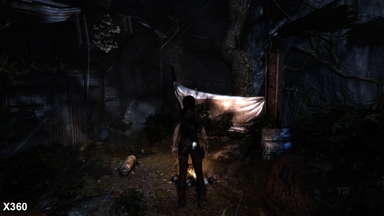 As we've come to expect from most titles this generation, Tomb Raider adopts a 30FPS update on both console systems, and similar to the latter Uncharted games we see v-sync fully engaged, completely eliminating screen-tear. The consistency of the visuals actually helps to preserve the cinematic look the developers are aiming for, although it does mean frame-rates are heavily impacted when the engine is under stress, rendering complex scenes featuring multiple enemies and a large number of alpha effects - smoke, fire and foliage for example.