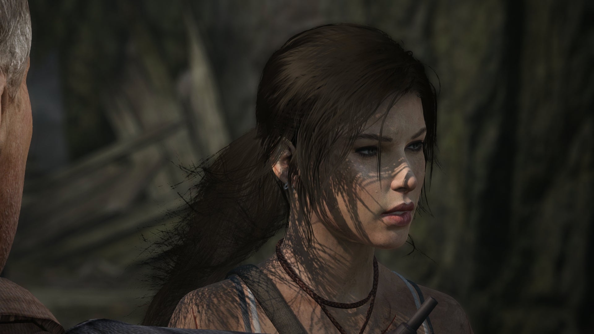 The effect can be convincing in slower scenes with little movement, bringing out more human characteristics in Lara's face, which in turn helps to create a better emotional hook between the player and the character. However, this implementation features some highly inaccurate physics that causes Lara's hair to react unnaturally around strong winds and during fast moving scenes, thus breaking the illusion and introducing some unsightly shadow artifacts.
