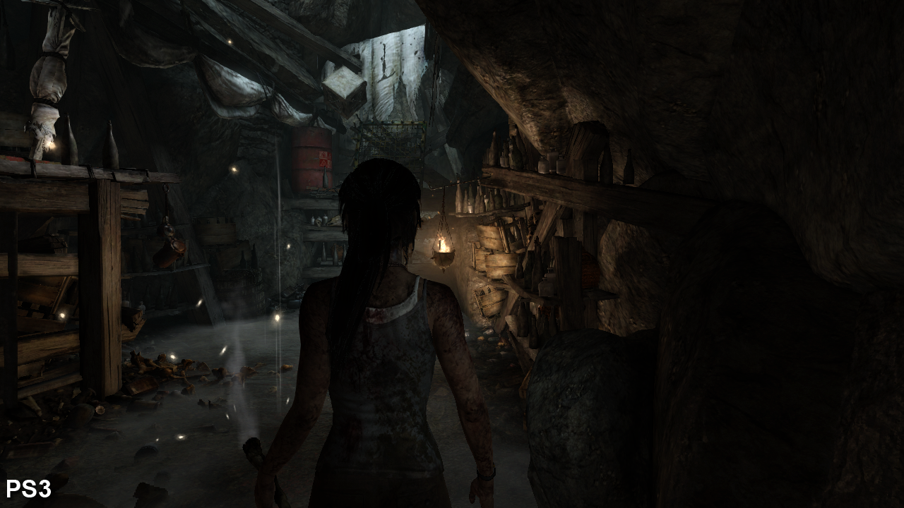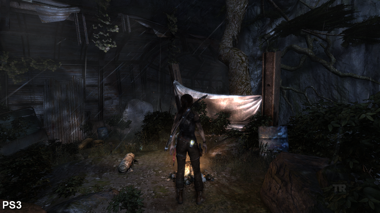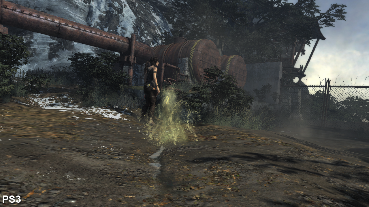 During gunfights in the affected areas we find the 360 game more steadily adheres to the 30FPS target with the PS3 version lagging between 2-4FPS behind, although drops are still visibly present on Microsoft's system. This is most noticeable during one scene where Lara is trapped in the woods and must fend off a pack of wolves using her bow, and also in areas that feature long draw distances. However, in scenes that feature the inclusion of multiple destructible light sources, the PS3 game holds up with more performance.