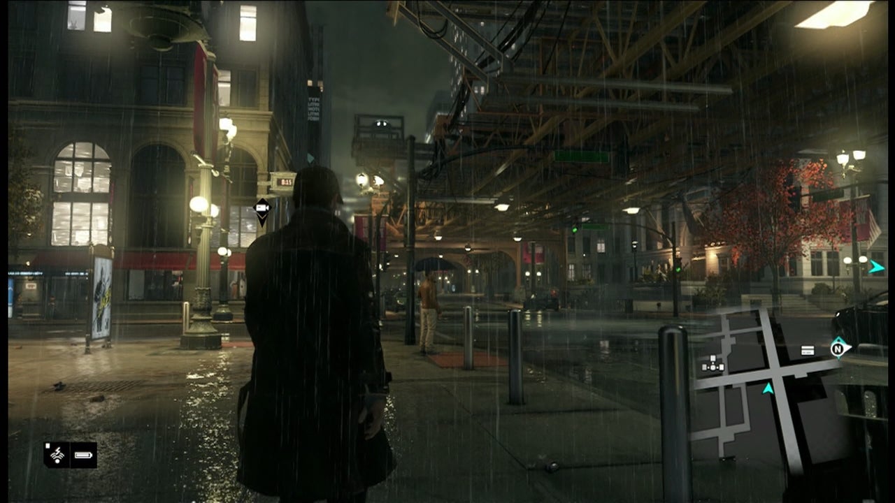 Away from image quality observations, performing a direct comparison becomes much harder due to the differing weather conditions of both demos and that neither showcase the same section of gameplay. Footage simply doesn't match up. That said, there are commonalities between the two. Both feature rainy night-time conditions, and in gameplay terms a number of events play out quite similarly - such as player-character Aiden Pierce hacking into the road network, causing traffic to crash.