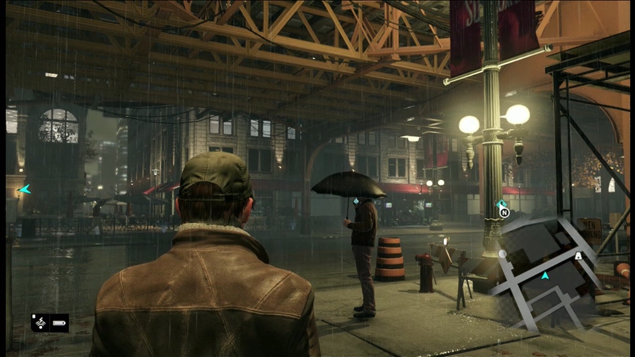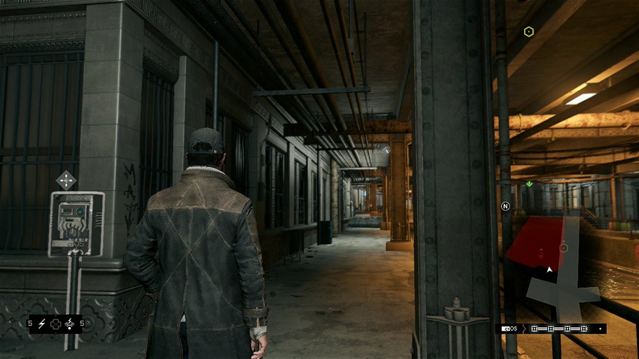 Ubisoft has also integrated aspects of the core technology to enhance gameplay. One of the main components of this is the unique user interface. A digital overlay maps itself across objects and characters in the game, which not only provides players with vital information, but also serves as the primary way to interact with the world around them. The system itself is simple: icons appear across the screen acting as trigger points for a number of gameplay options. These triggers are used in a number of ways, such as activating barriers that cause traffic to pile up in the road, or hacking into someone's mobile phone in order to distract them as you sneak past.